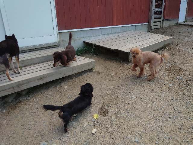 ワンコ達はみんな仲良し、お泊りの子もあん の子たちも!!