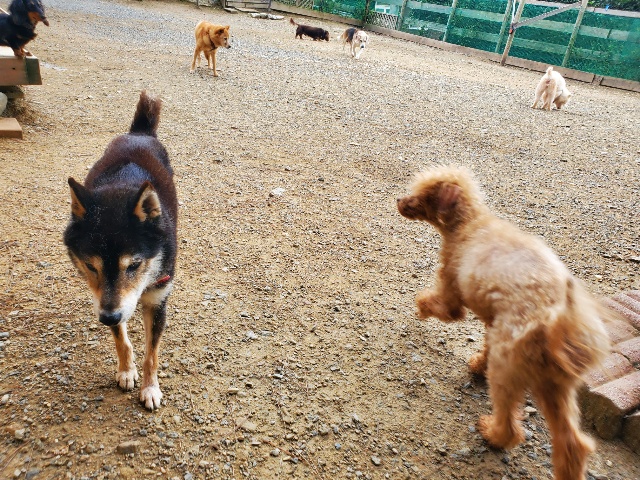 シニアのワンコたちもはしゃぎます^^