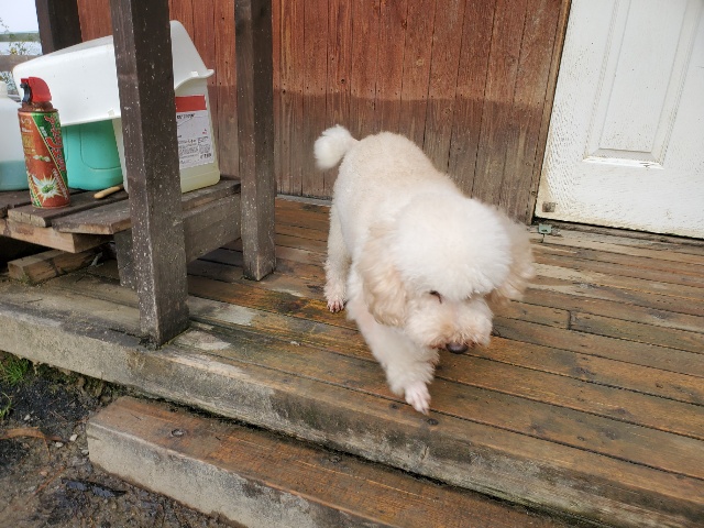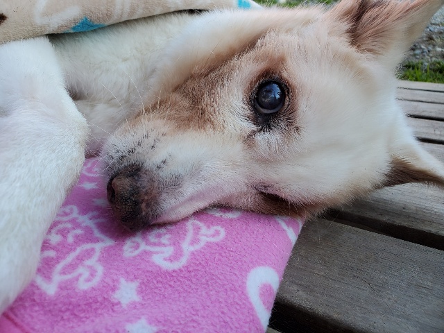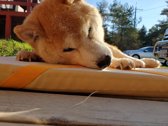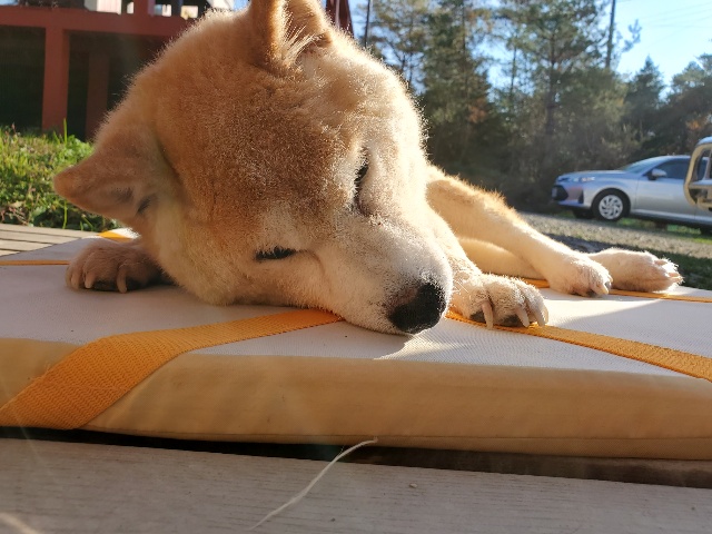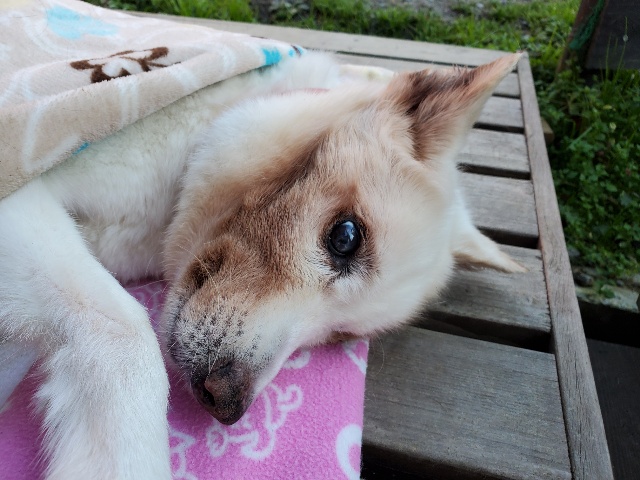 昨日の新人さん、大きなワンコ なかなか起きません。