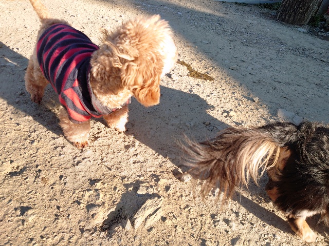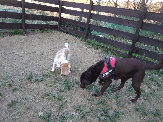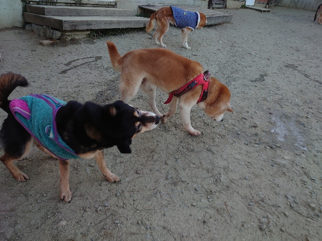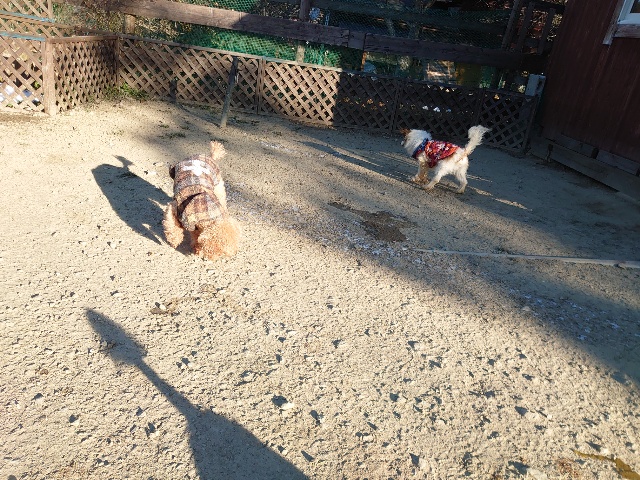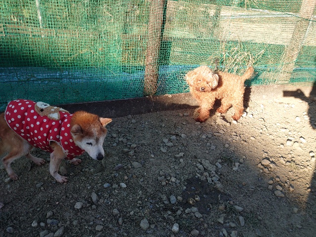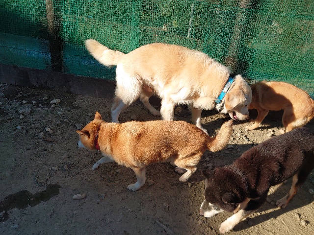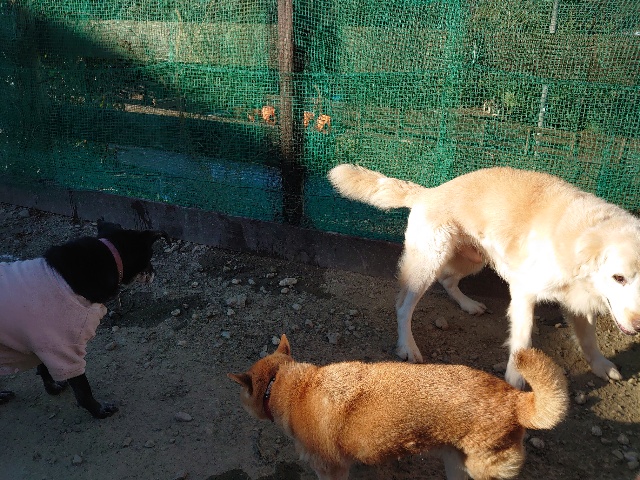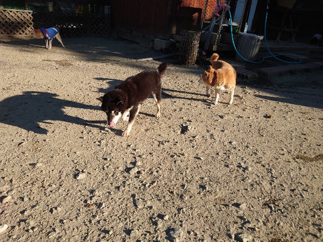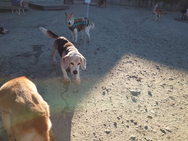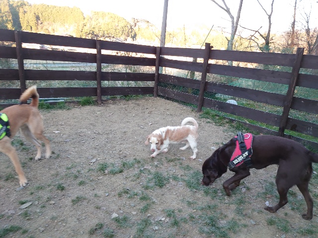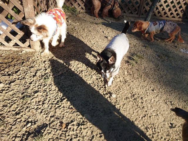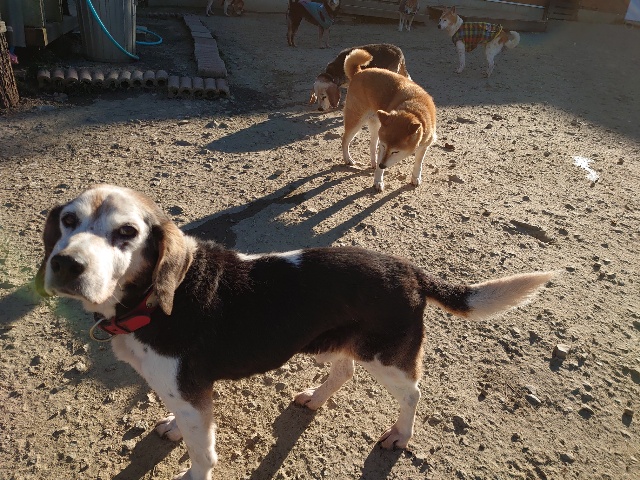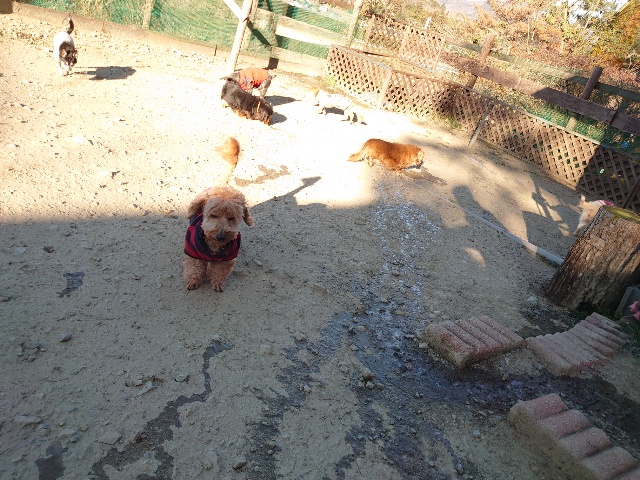 今日はドッグラン&カフェにお客様、保護犬ちゃんのマフィン、現)ニコ、ゴン&キャラが遊びに来てくれました。