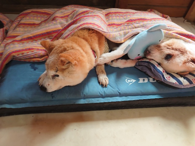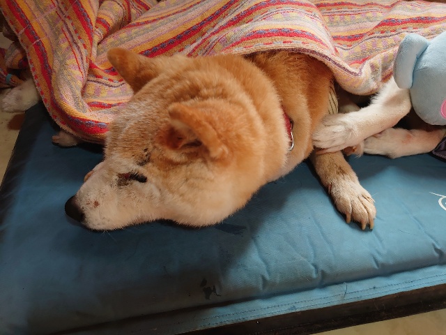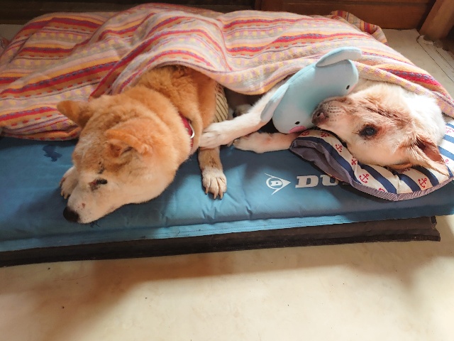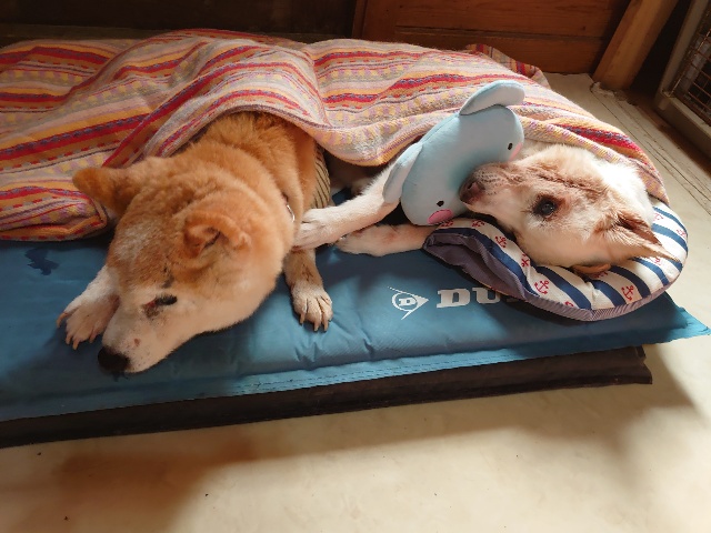 寝たきりワンコ達は無理をせずポカポカ犬舎でまったり。