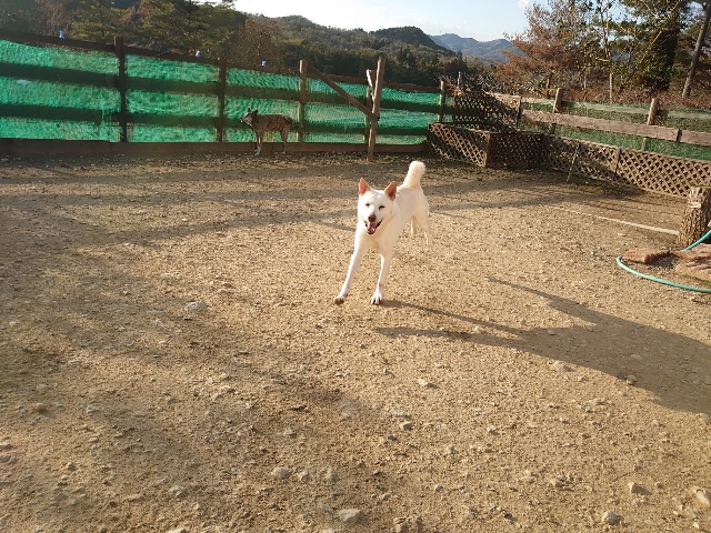 なかなか強い風ですが 老犬ホームあん の犬舎はしっかりした造りです。