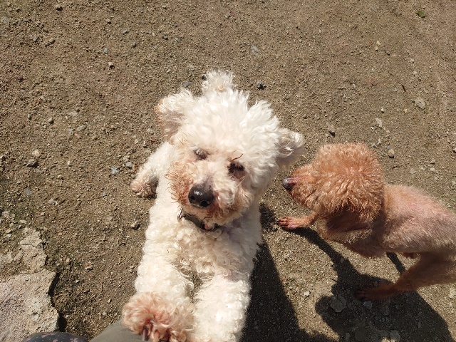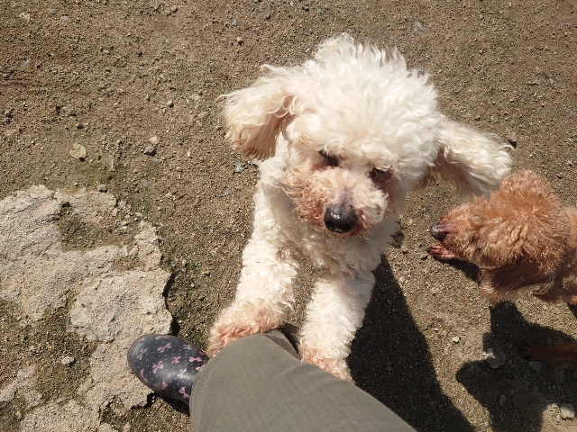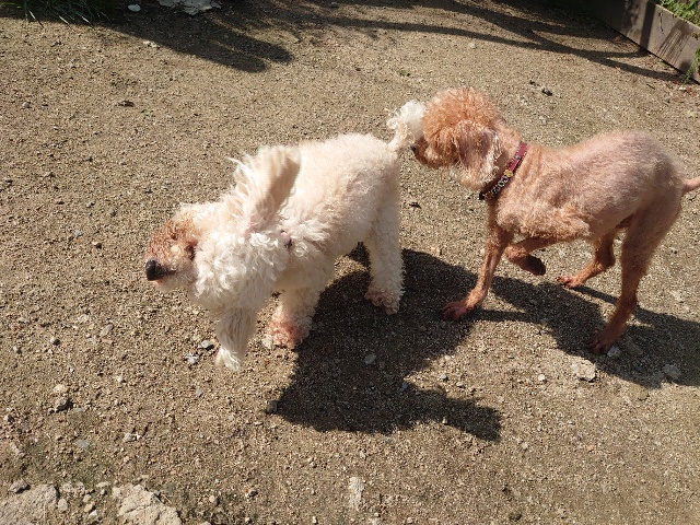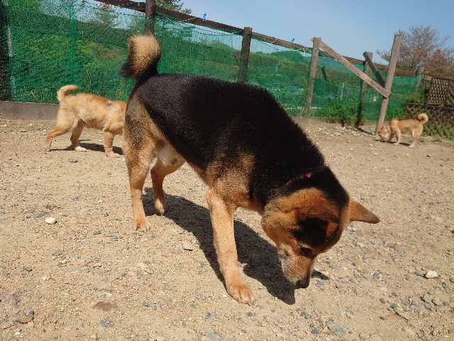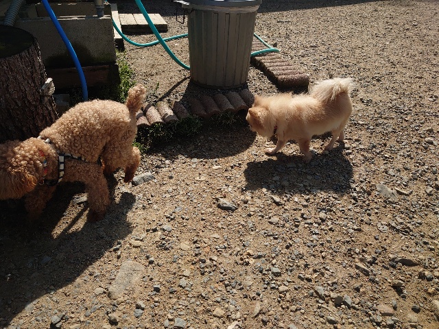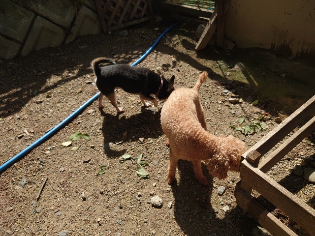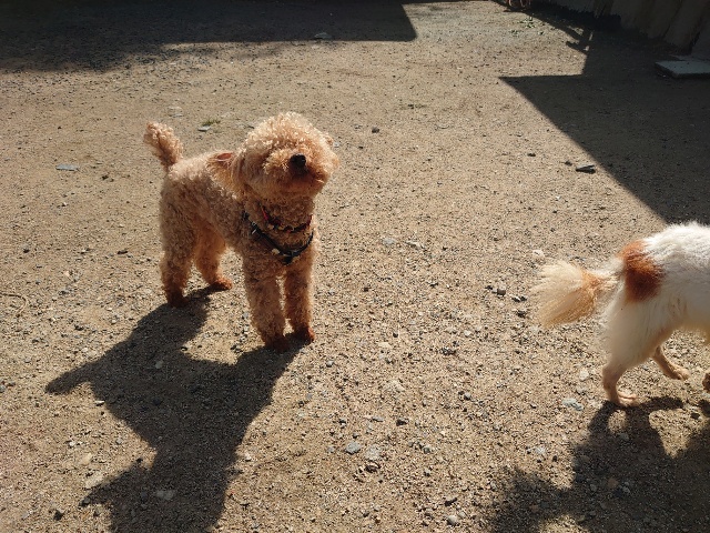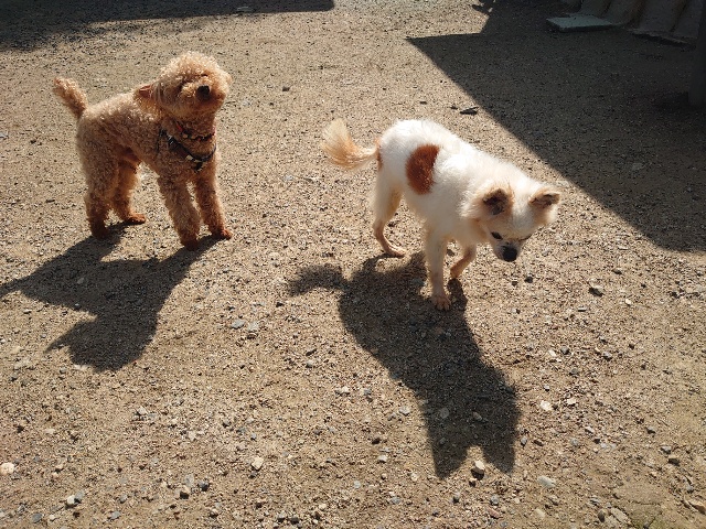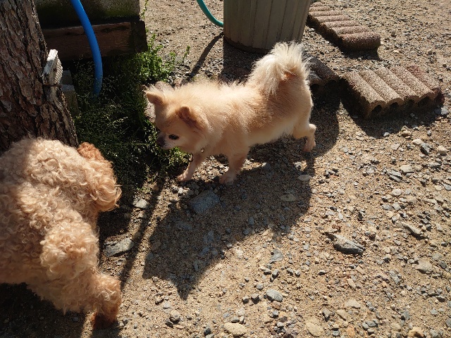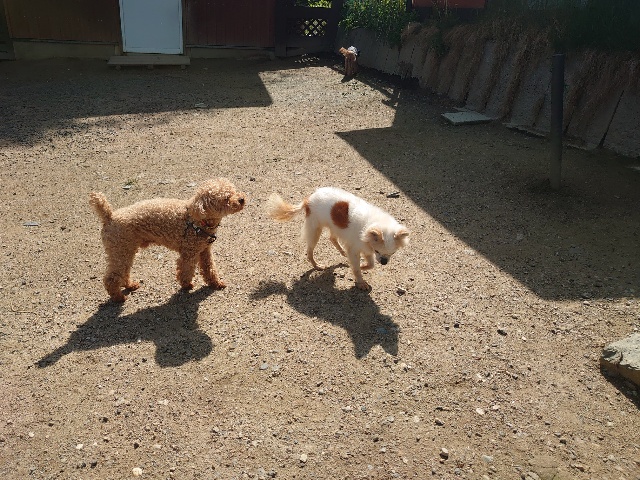 先日も先住犬と一緒に散歩をしに来てくださいました^^