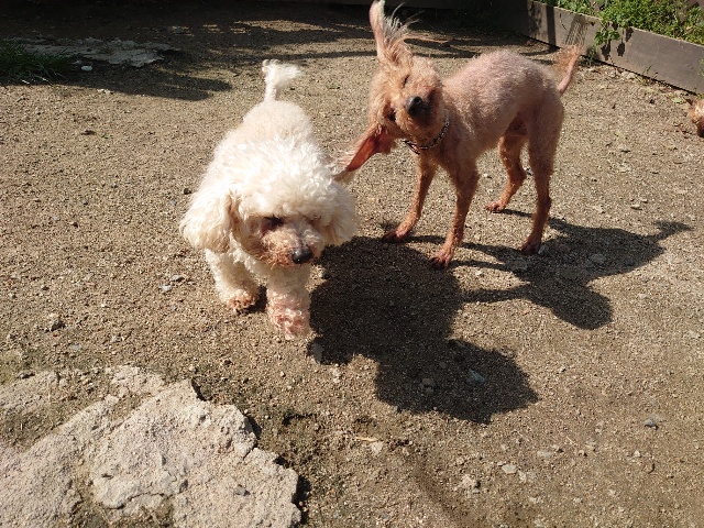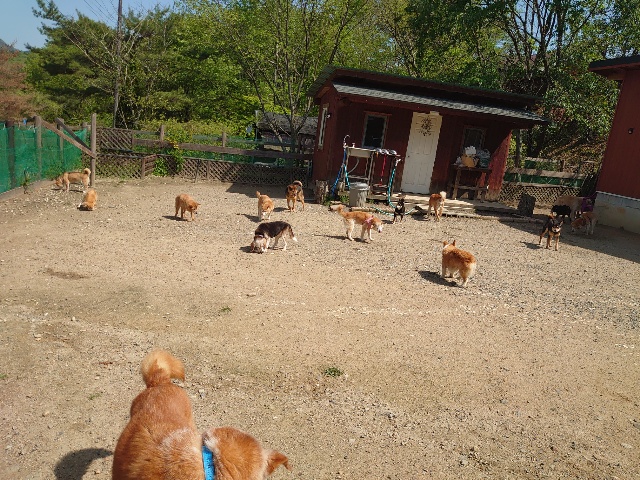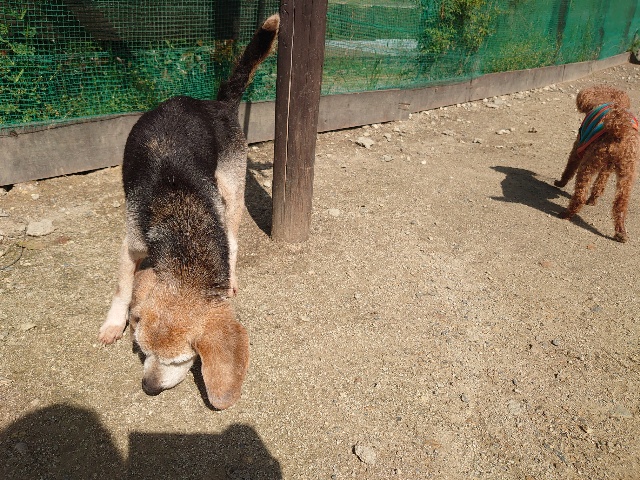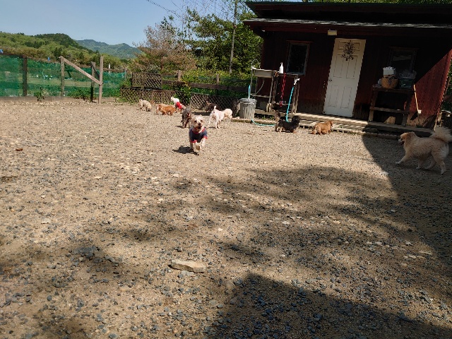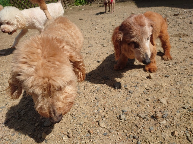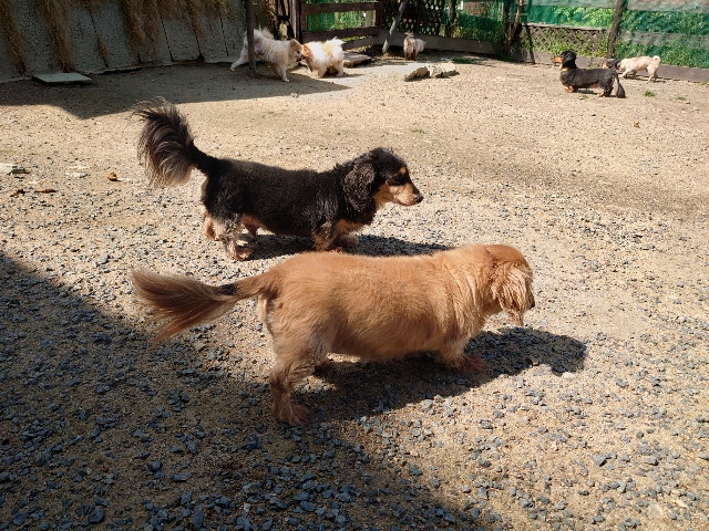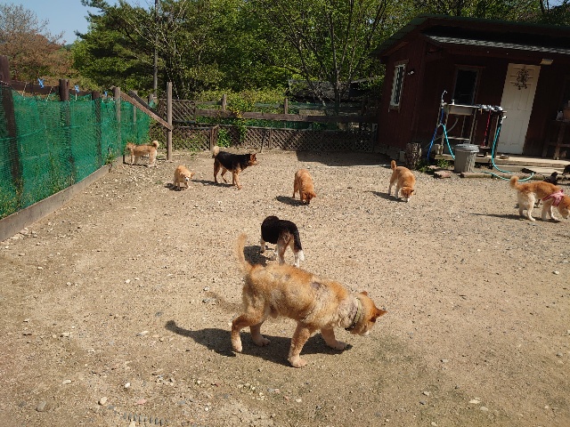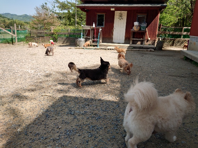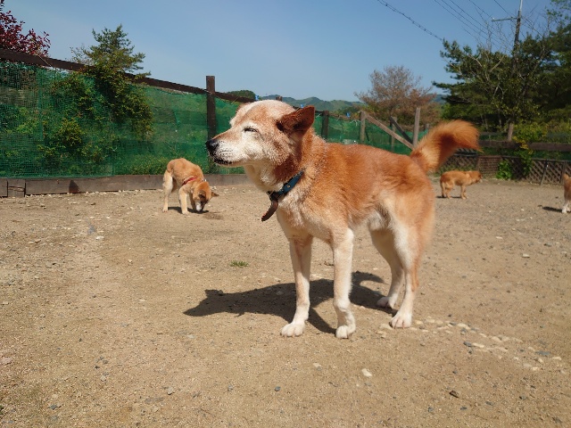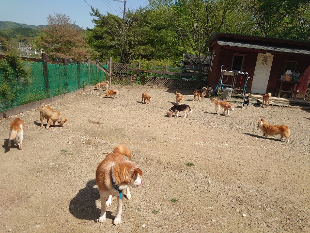 老犬ホームあん のワンコ達、自然の中で仲間と過ごすことで認知症の進行が緩やかになる子が多いです。