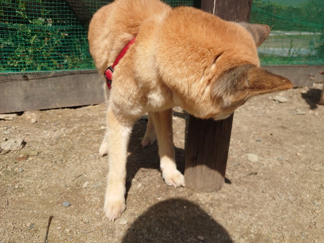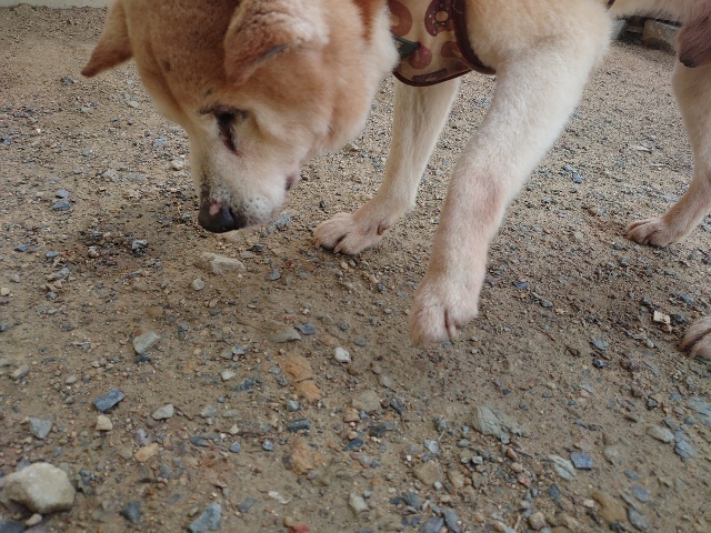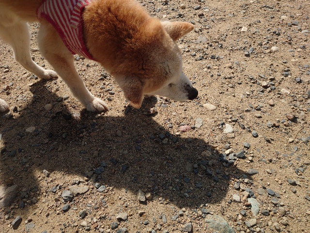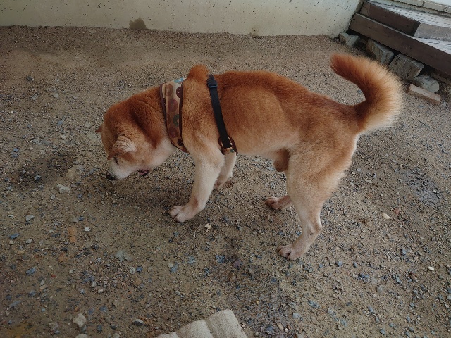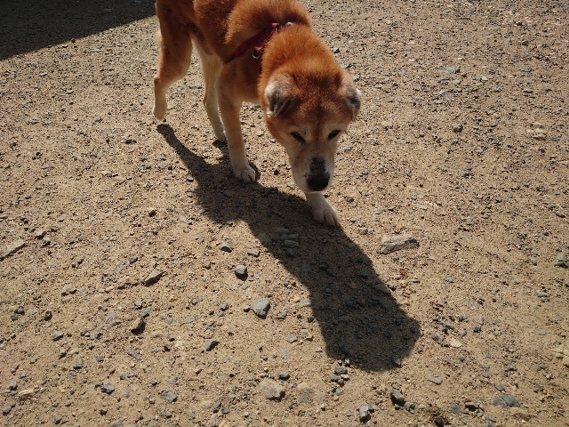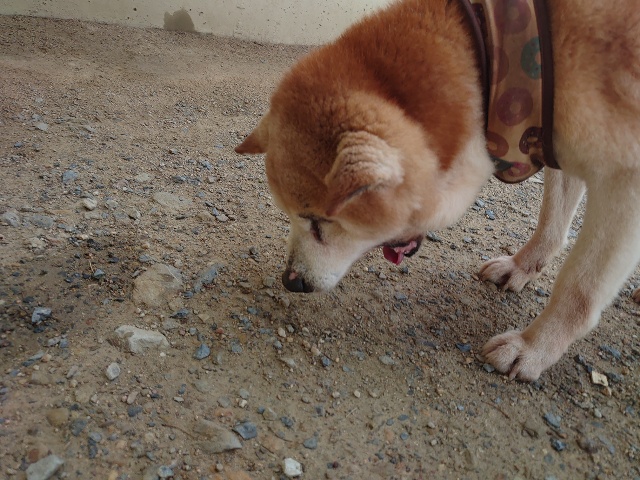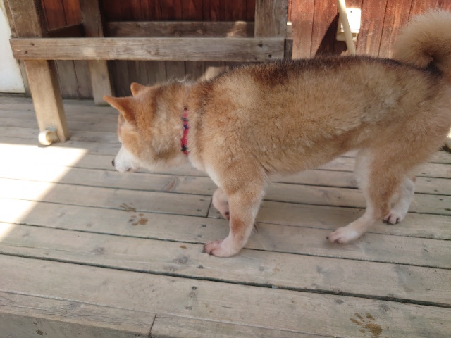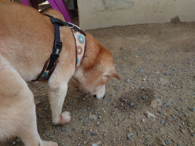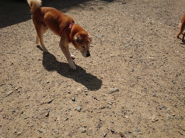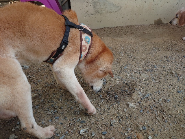 柴犬コハク、常連のお客様がじっくりご検討中です。