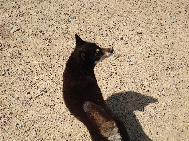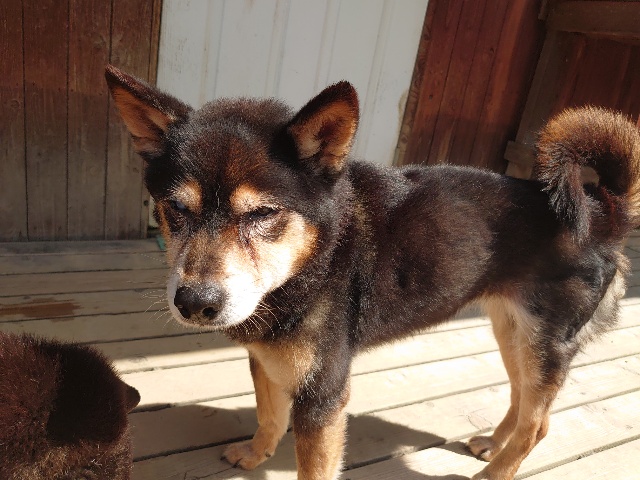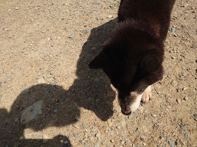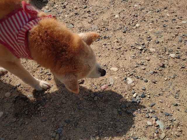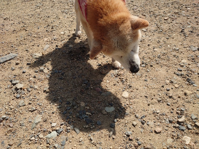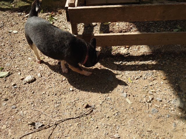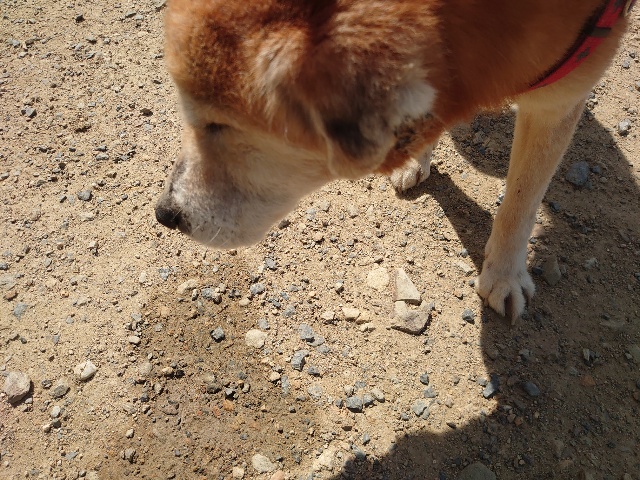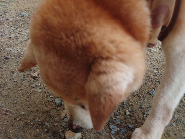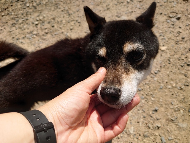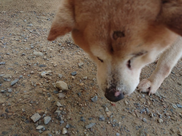 柴犬コハク、常連のお客様がじっくりご検討中です。