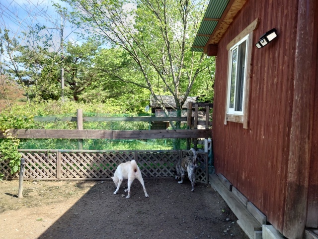 おそらく姉妹であろう、モフちゃん家族の中入り^^
