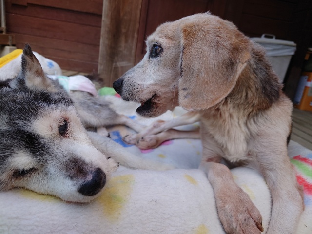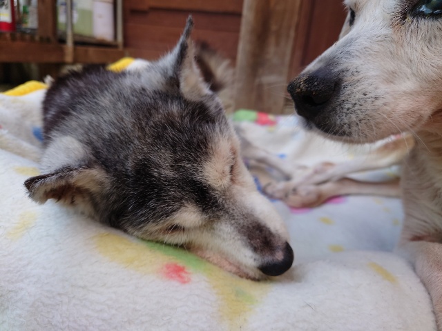 頑張っているシニアワンコ達、自立困難にもなります。