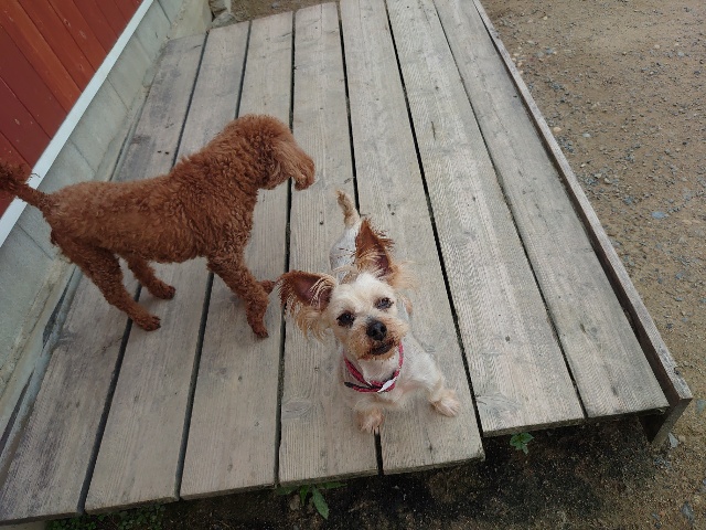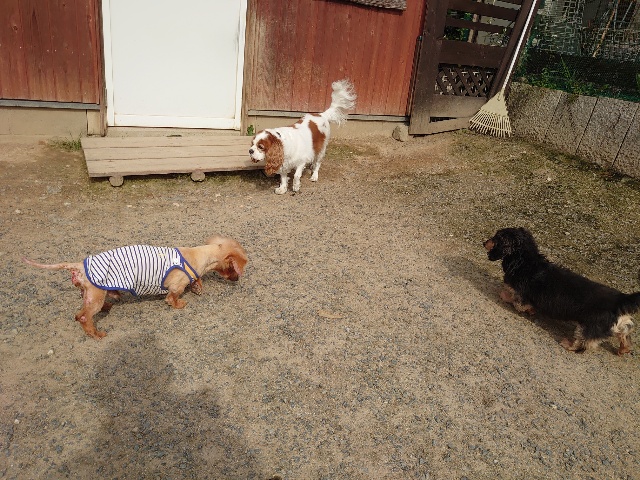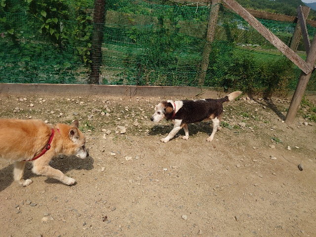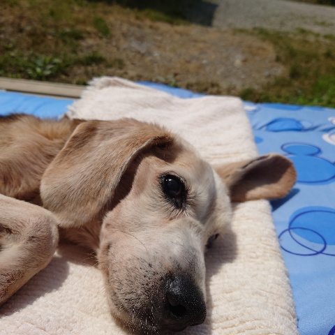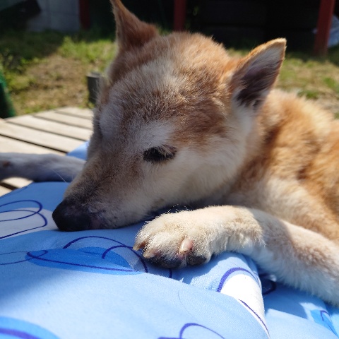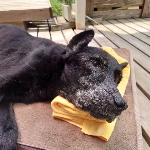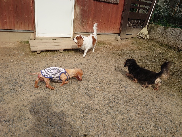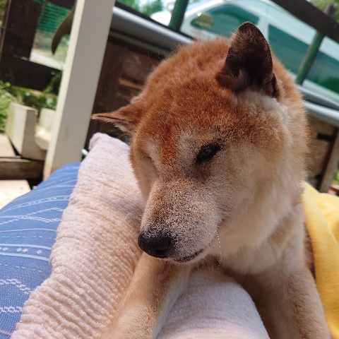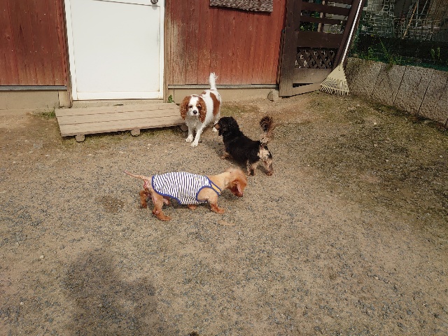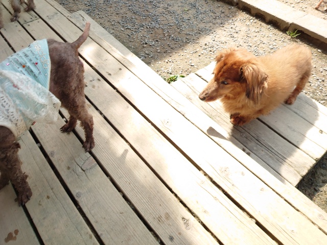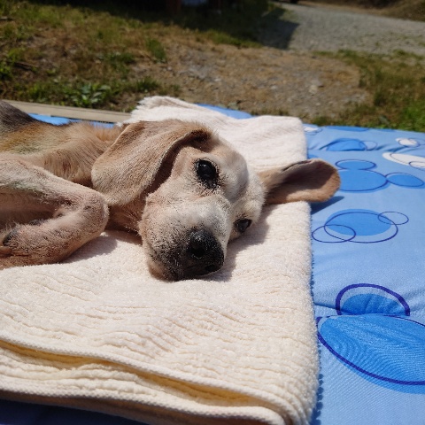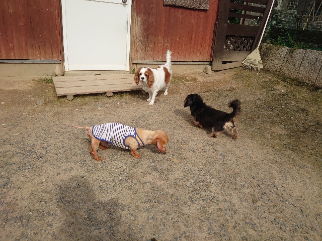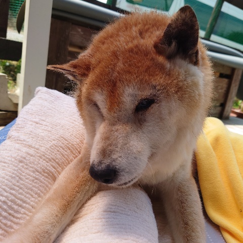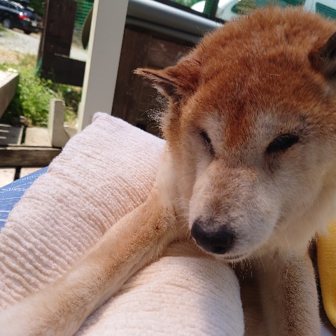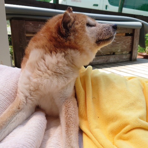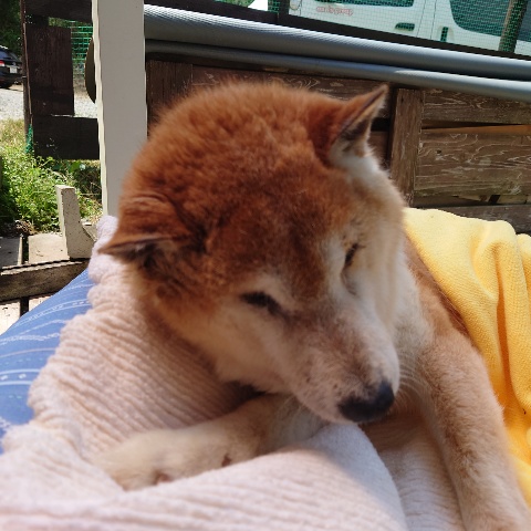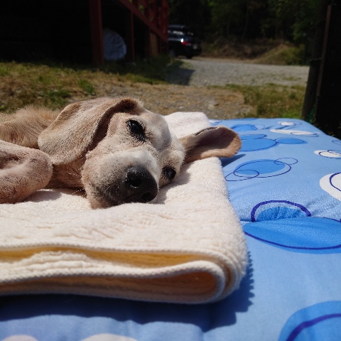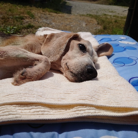 寝たきりのワンコ達も日に当たり風を感じる時間を。