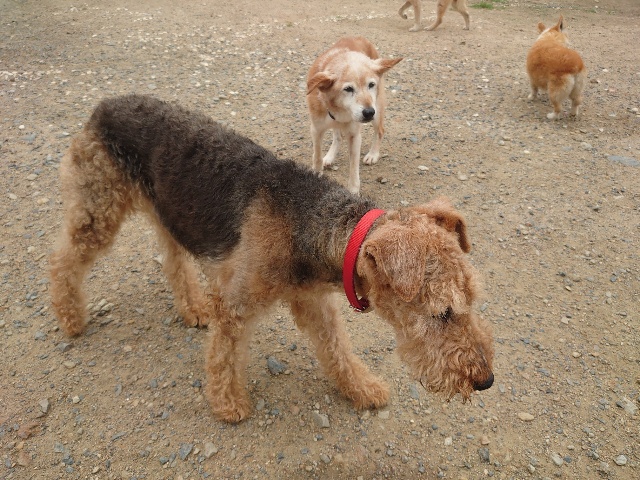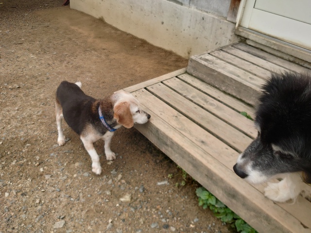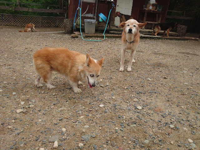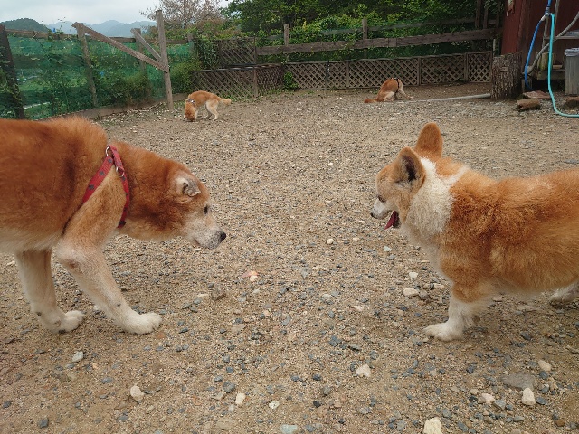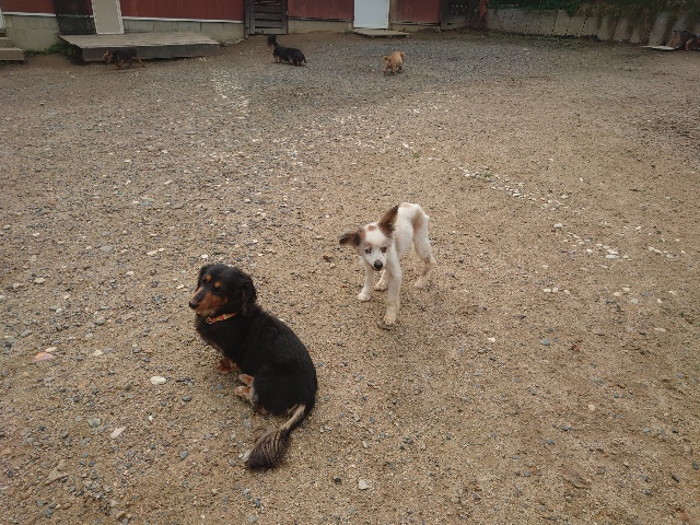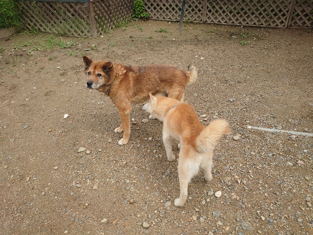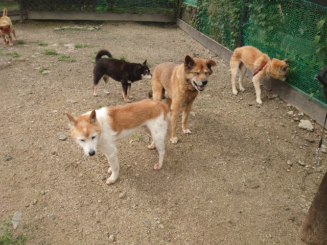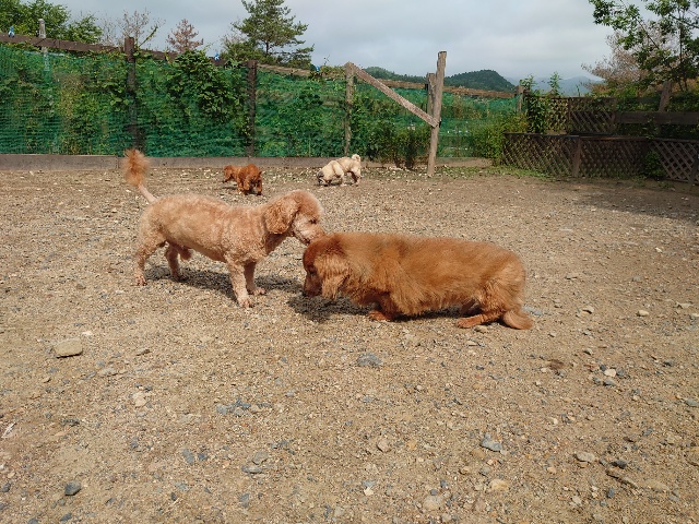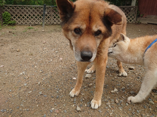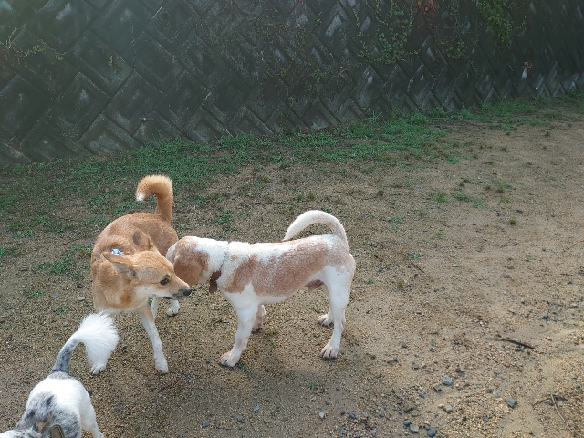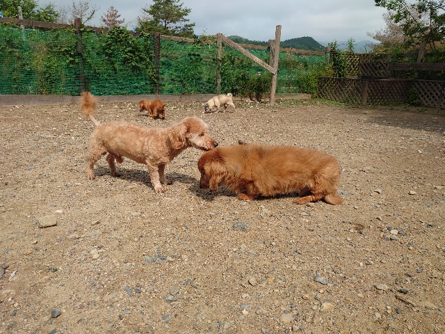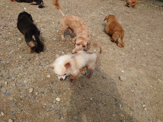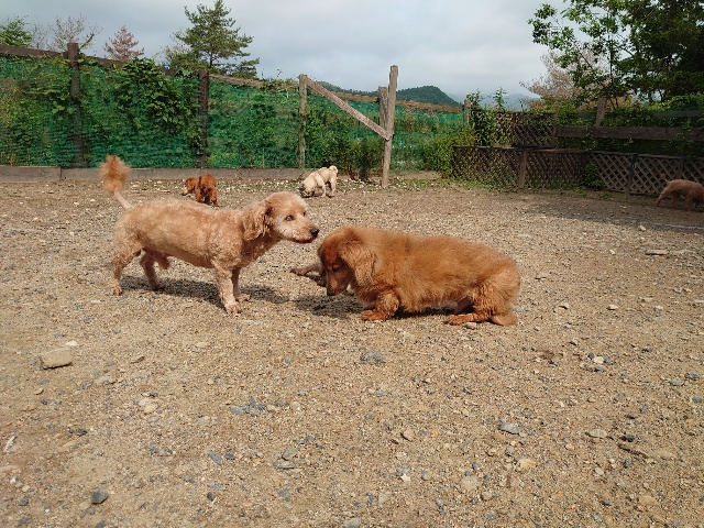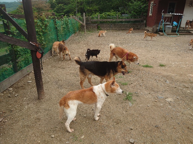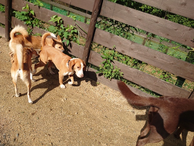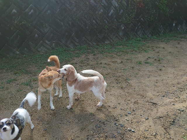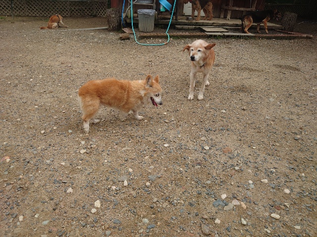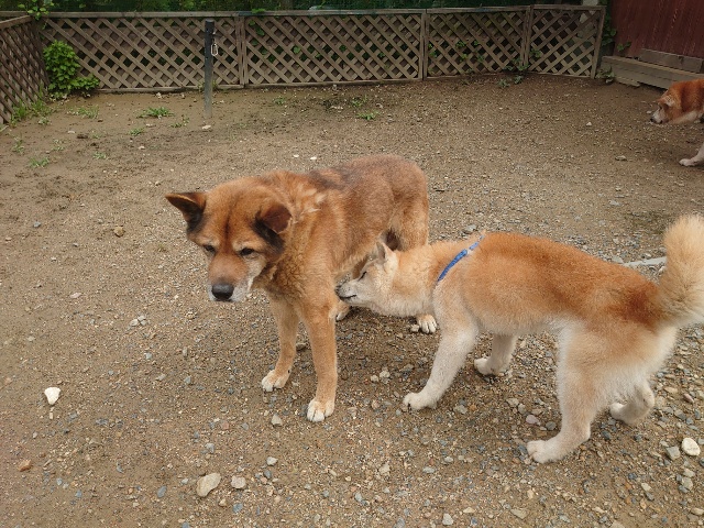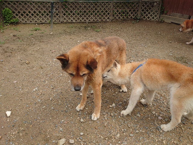 全く問題なし、やさしく迎える先住犬達!!