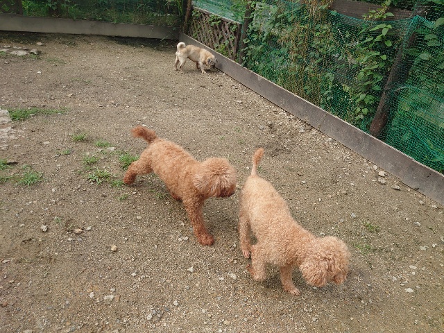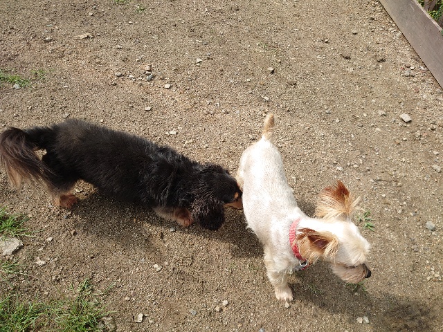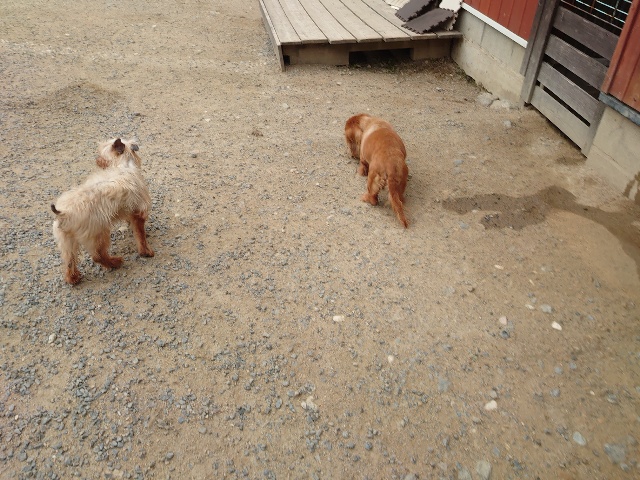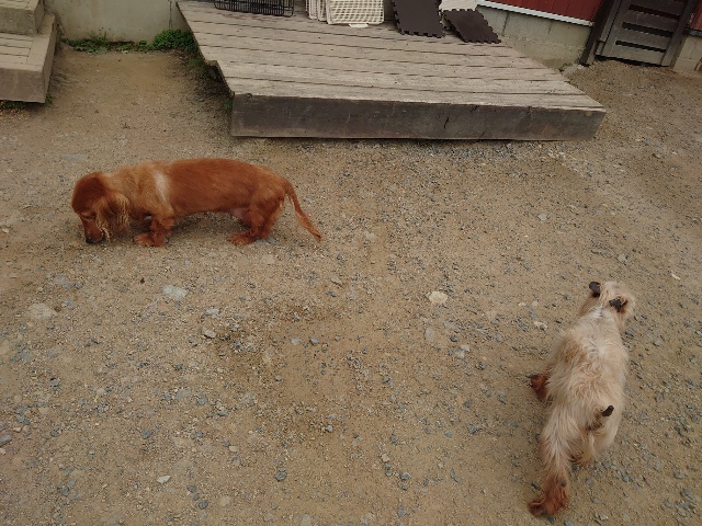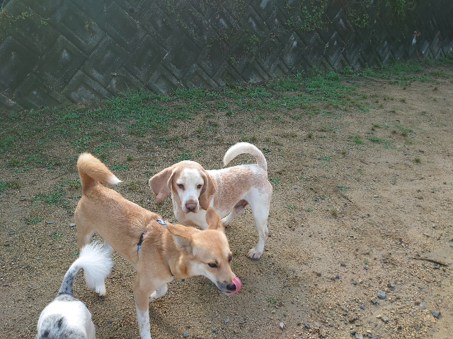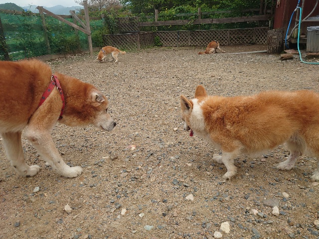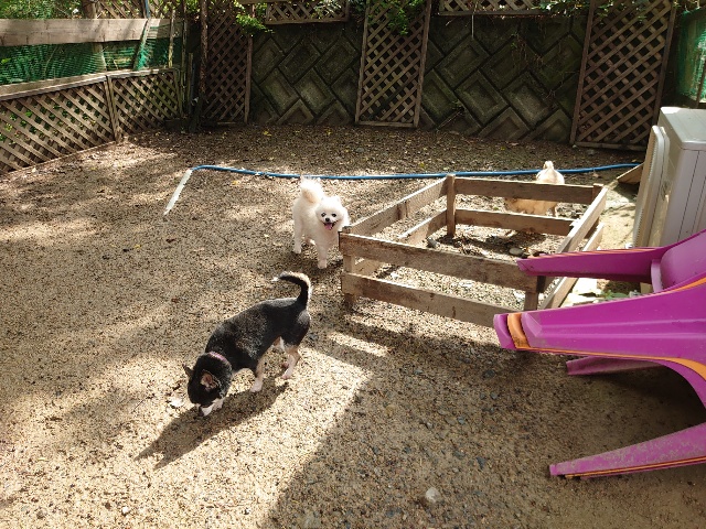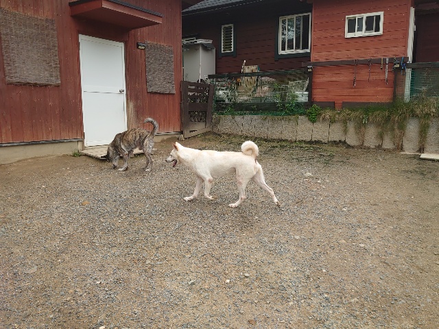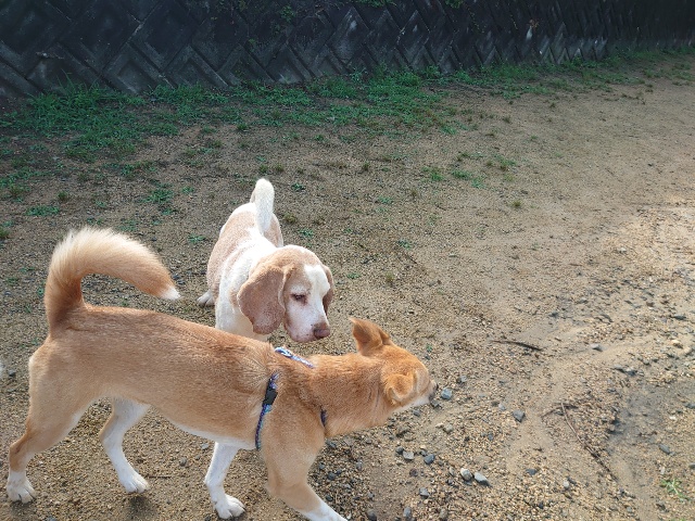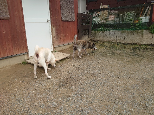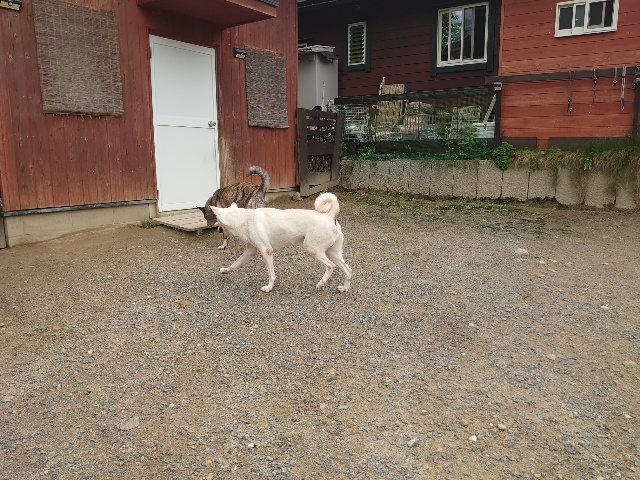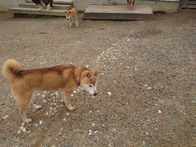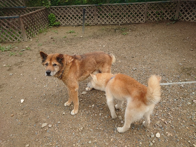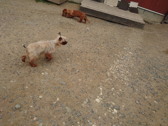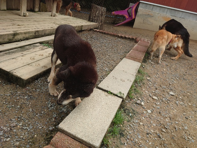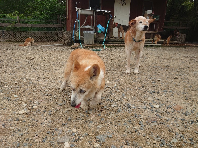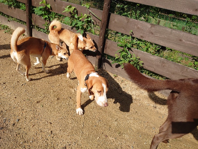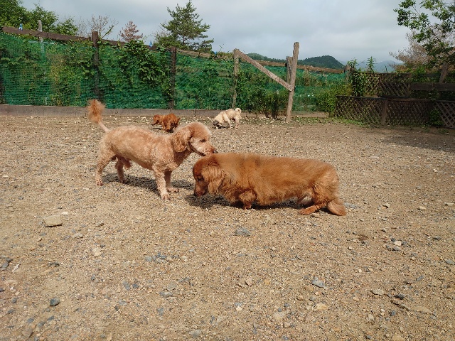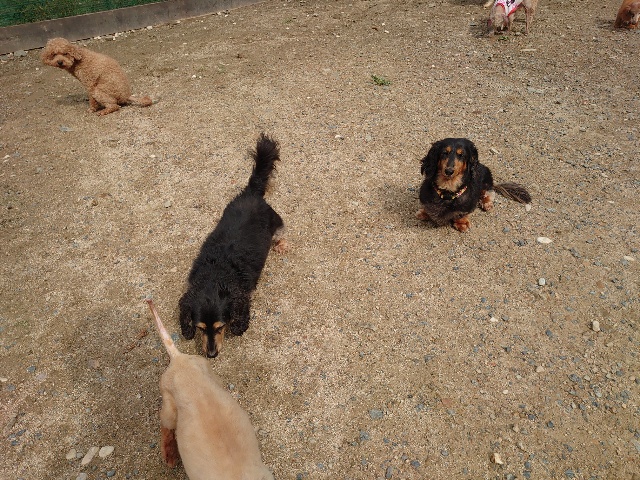 全く問題なし、やさしく迎える先住犬達!!