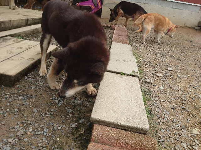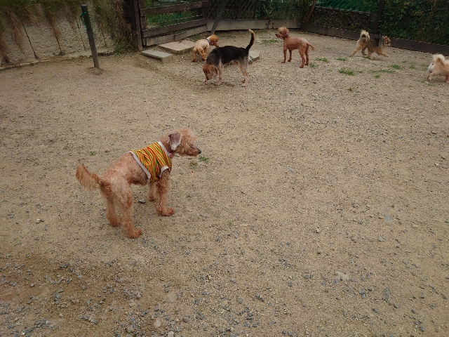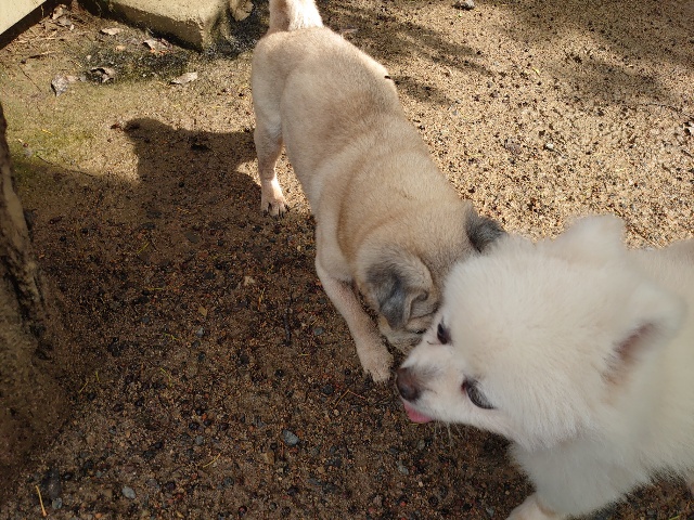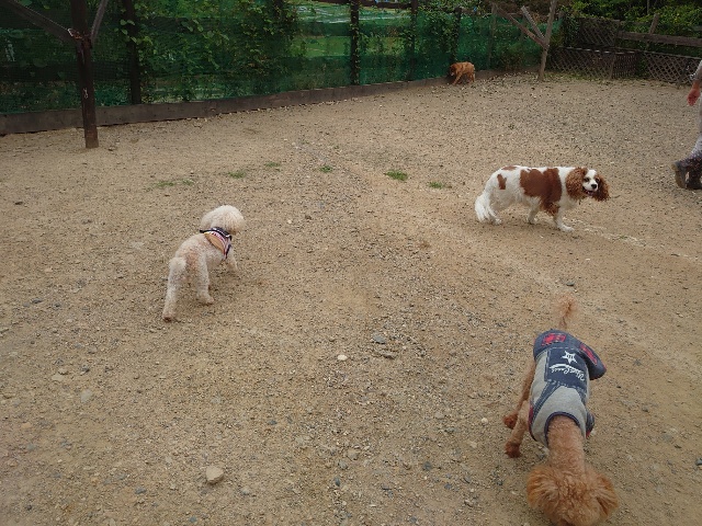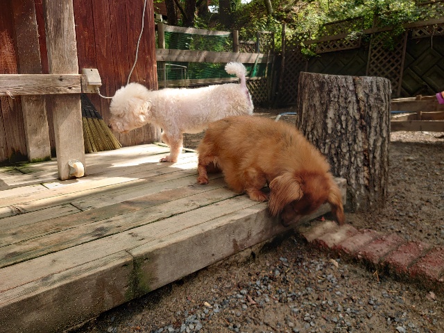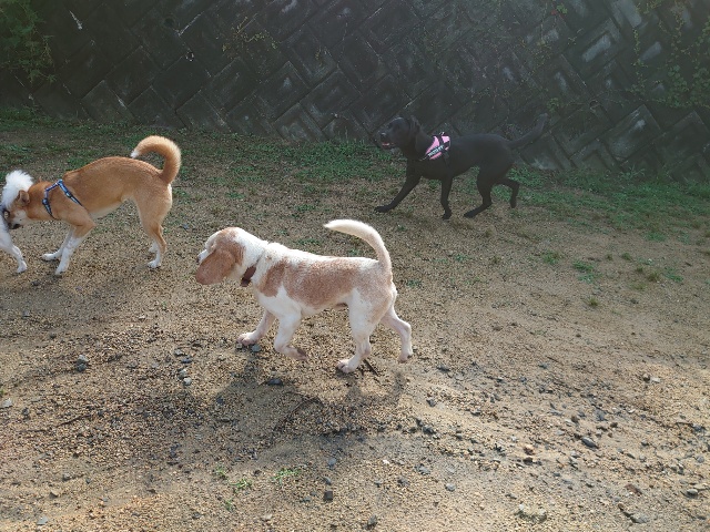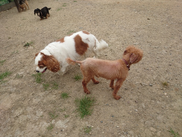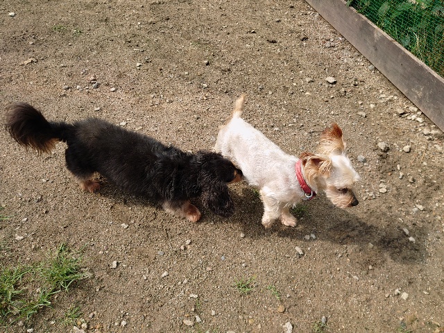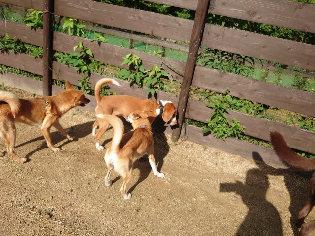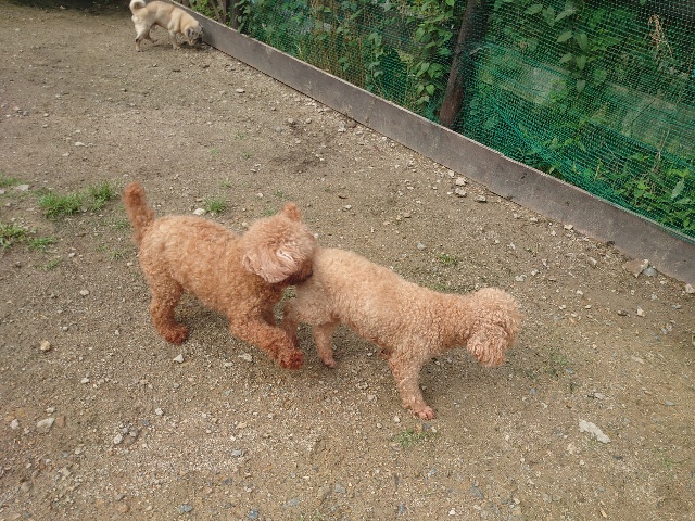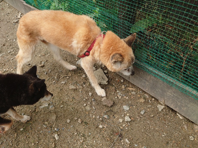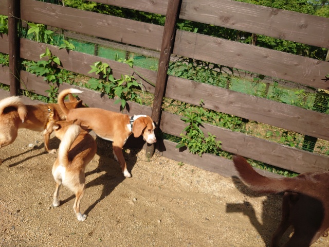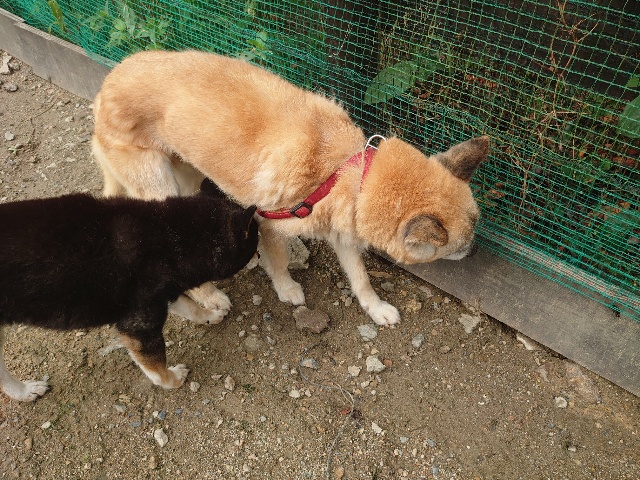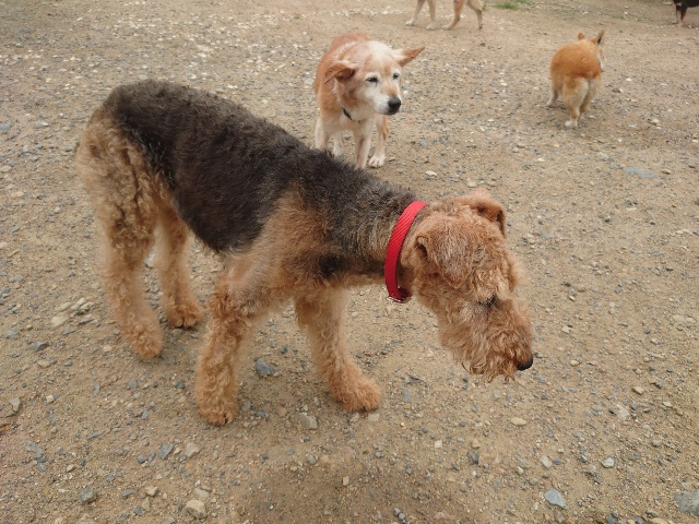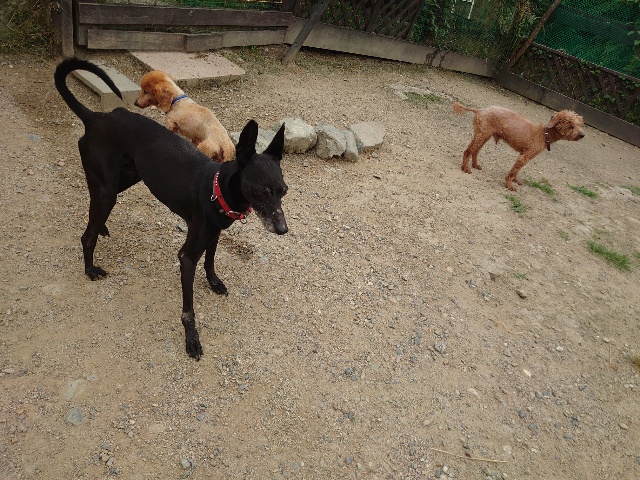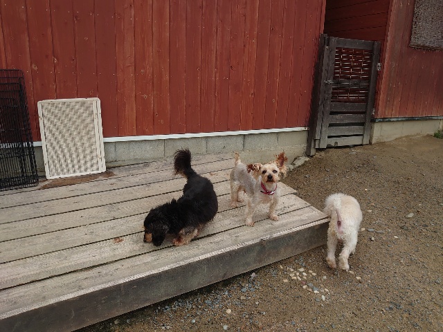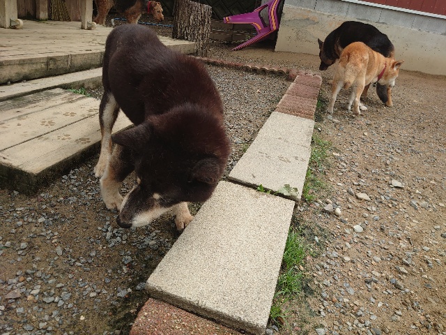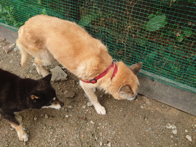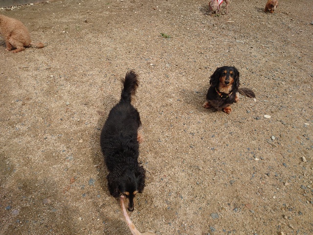 全く問題なし、やさしく迎える先住犬達!!