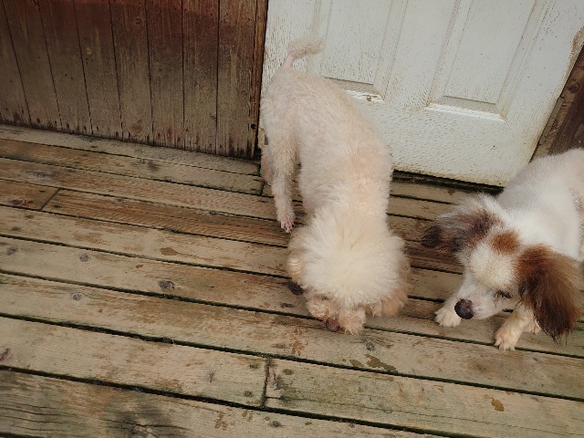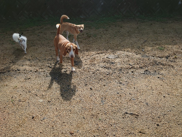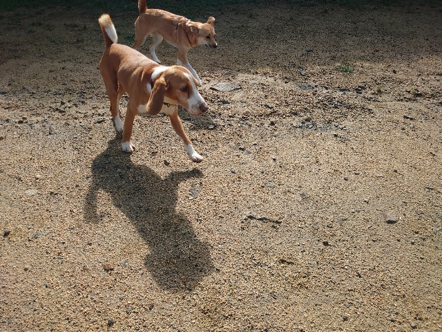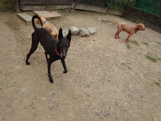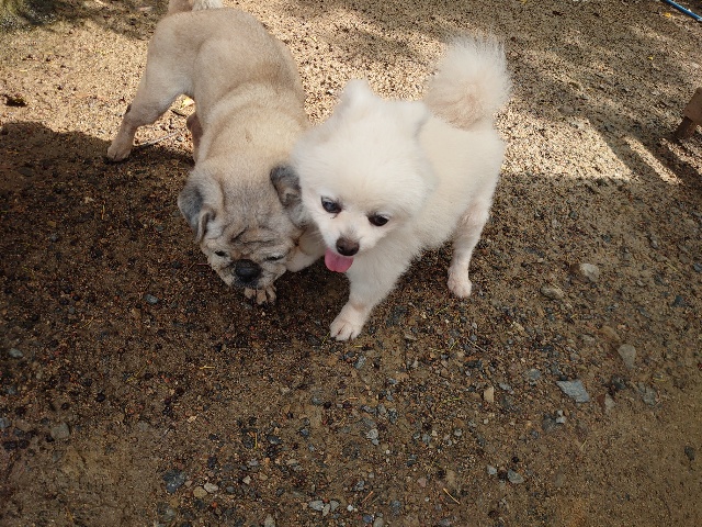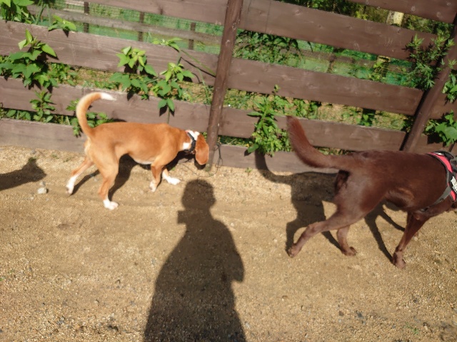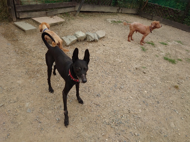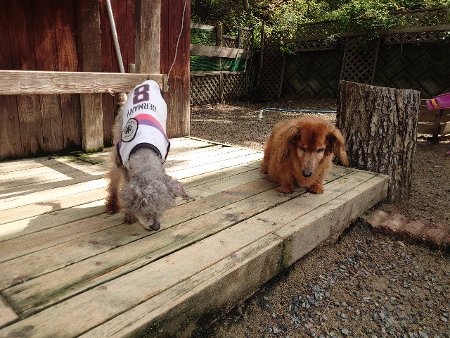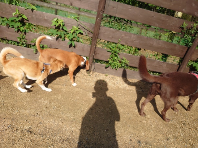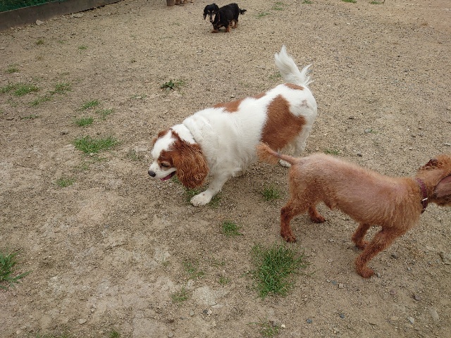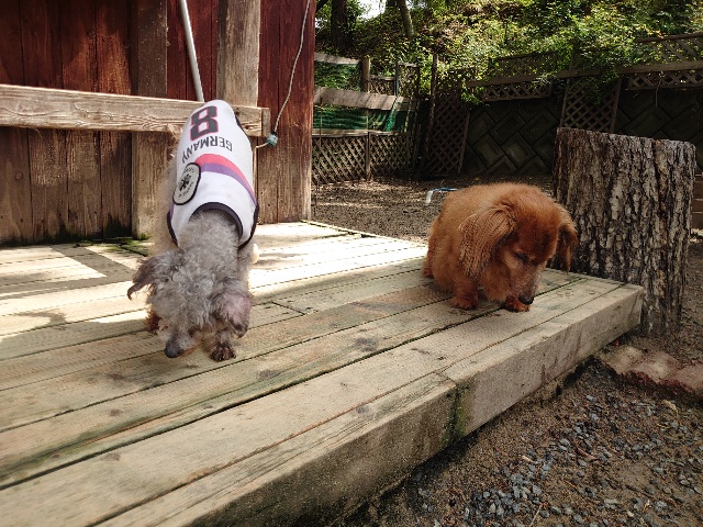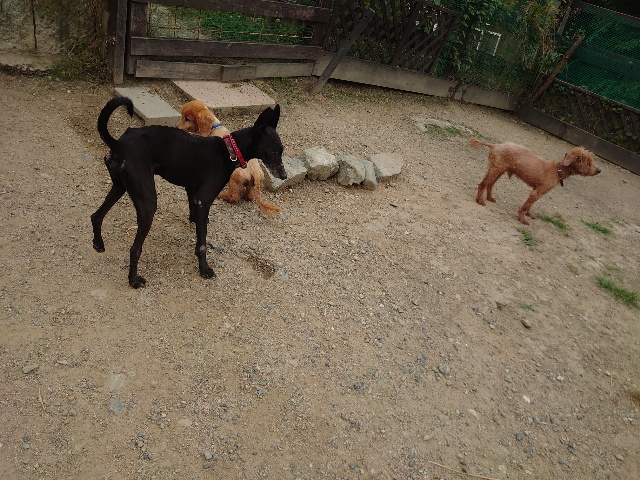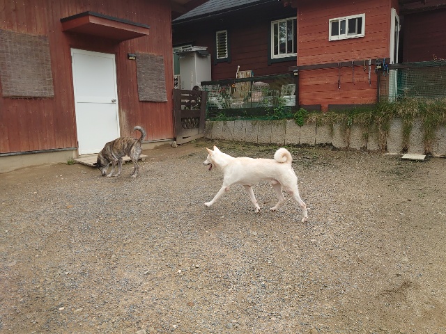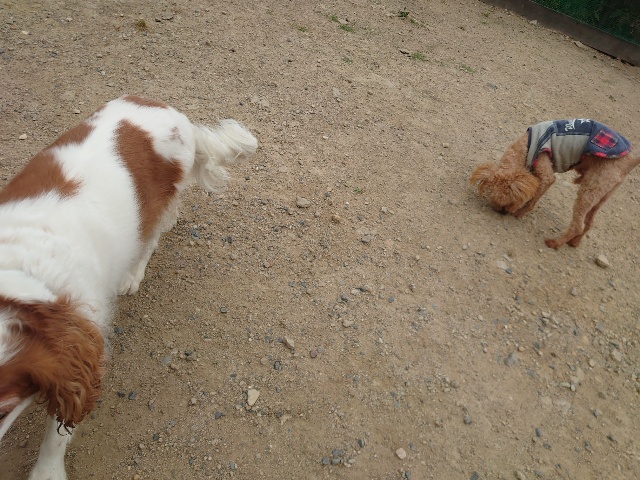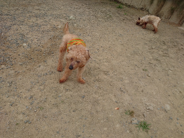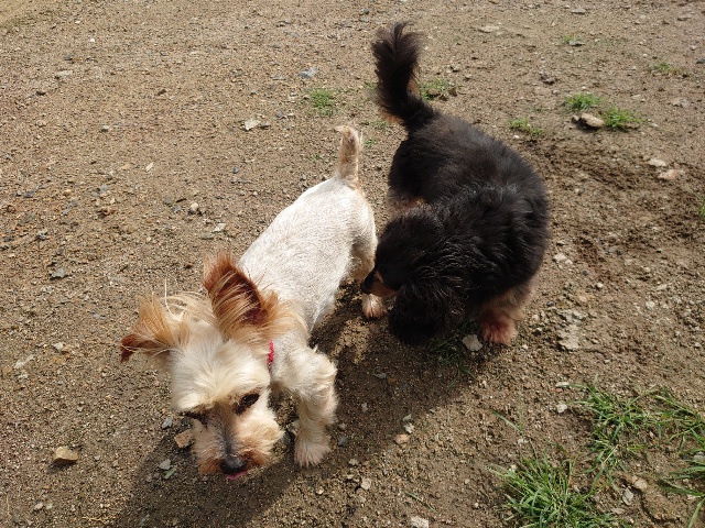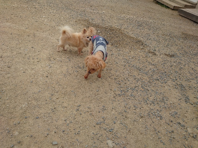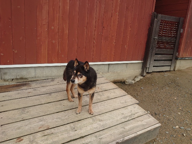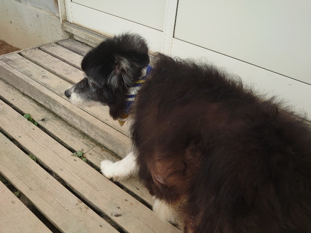 全く問題なし、やさしく迎える先住犬達!!