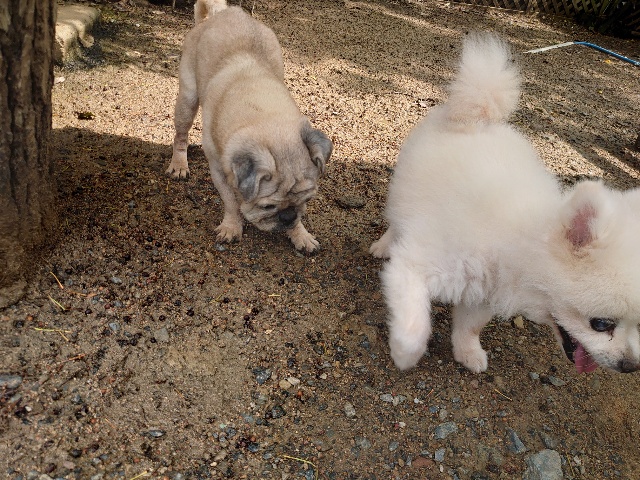 威嚇もせず仲間入りするプー、癒されます。