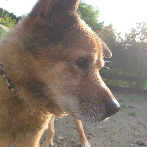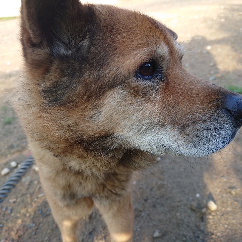 穏やかな表情、高齢のプー、他のワンコとも仲良くしていました。