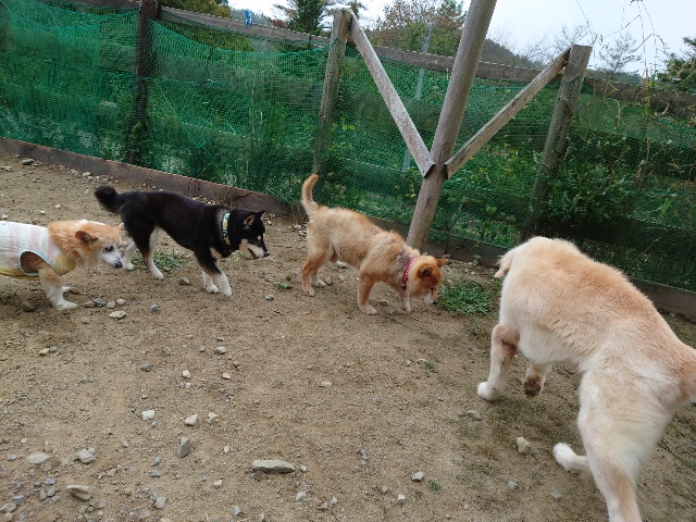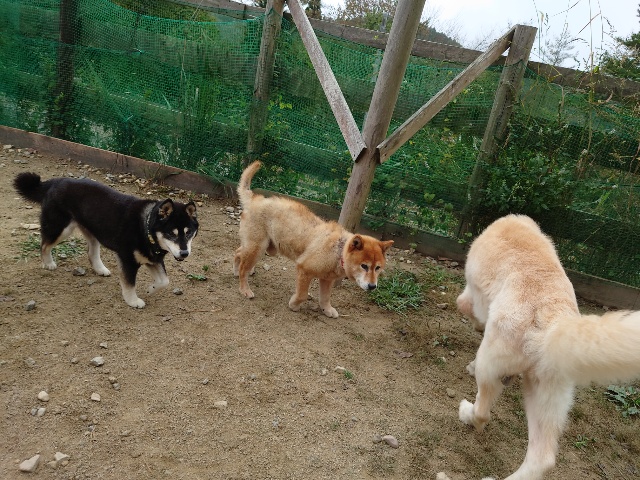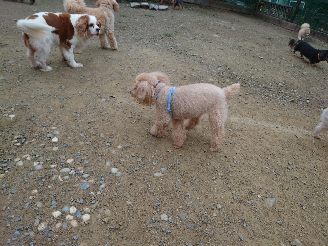 ワンコはみんな遊ぶのが大好き、怖がりちゃんも徐々に慣れていきます。