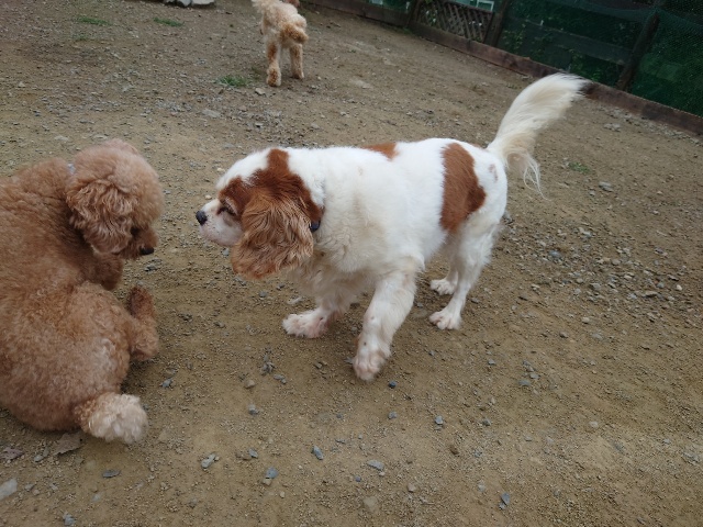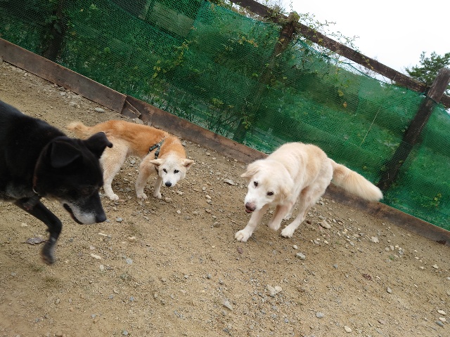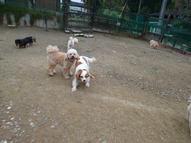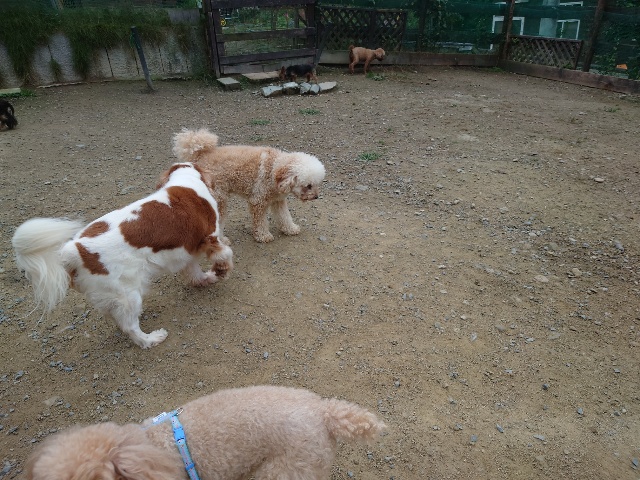 ワンコはみんな遊ぶのが大好き、怖がりちゃんも徐々に慣れていきます。