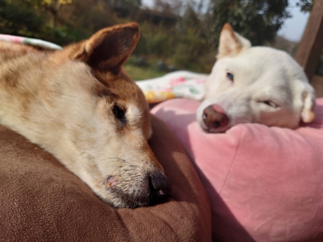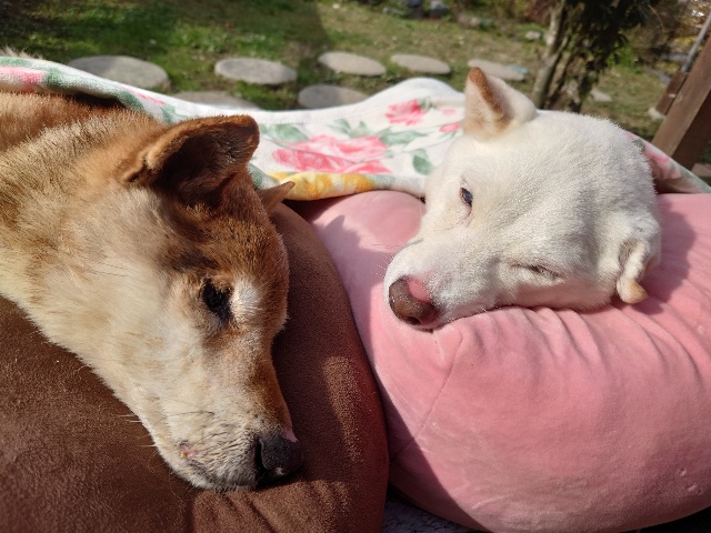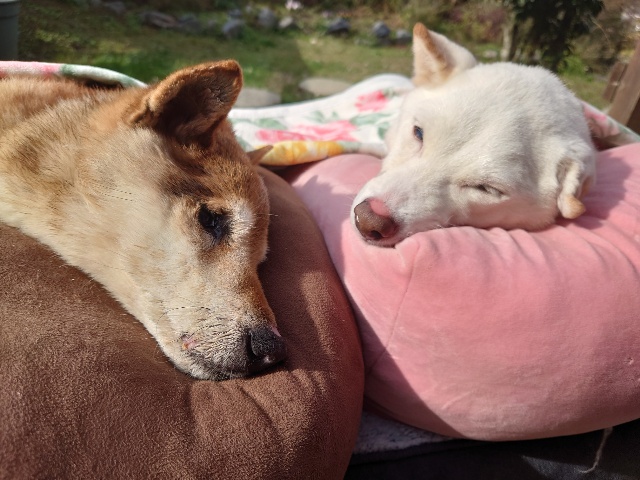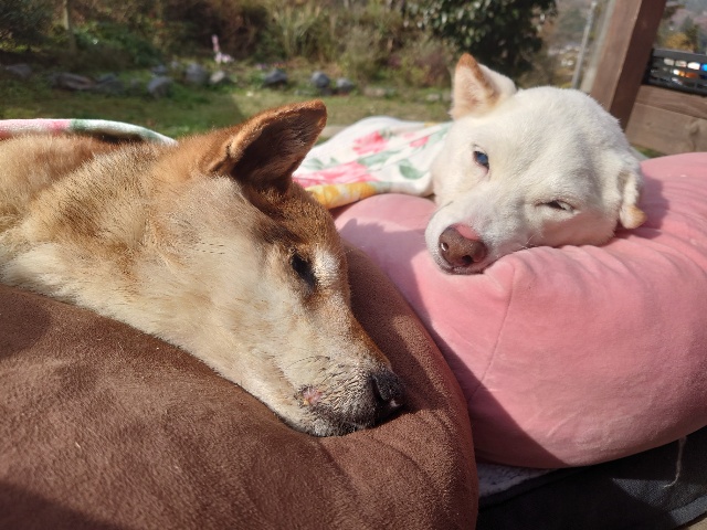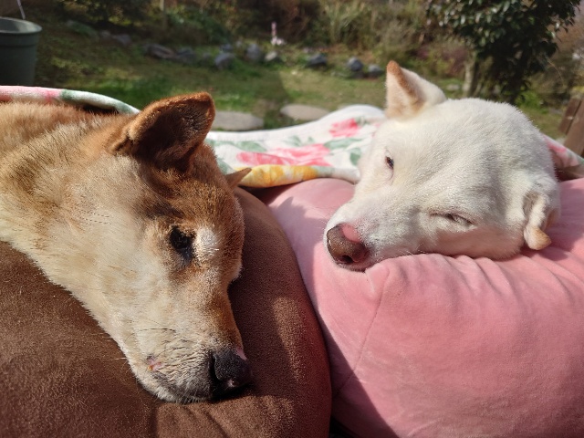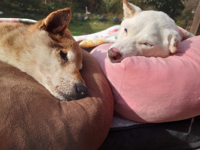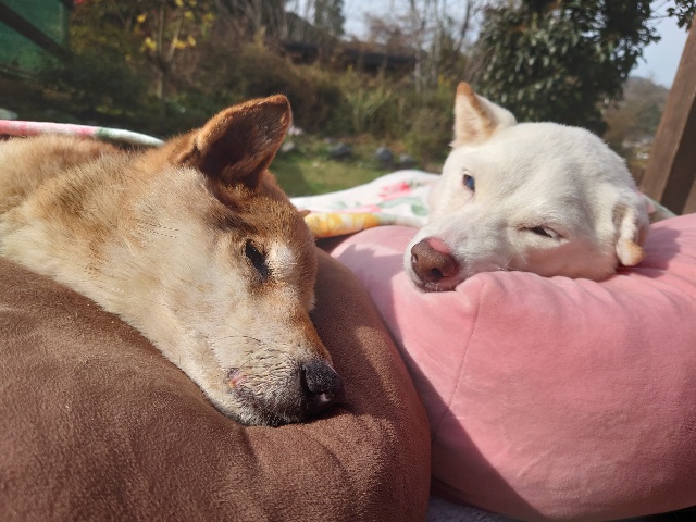 日向ぼっこでスヤスヤ寝るワンコ達、可愛いです。