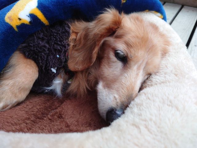 お泊りワンコのマイロがお帰りに、代わって今日から常連ワンコのベイリー参上。