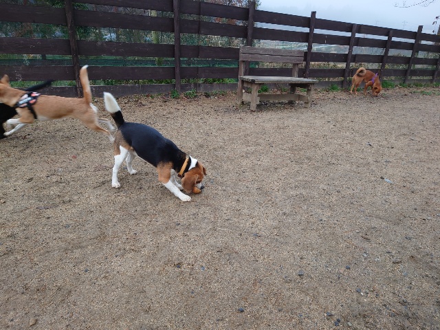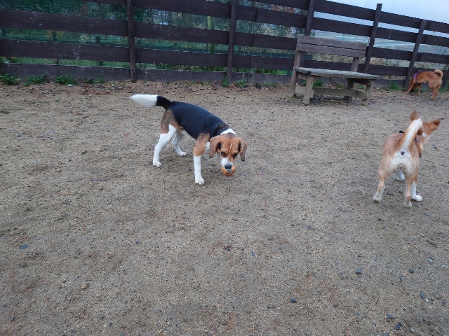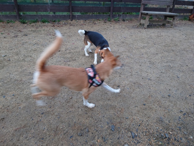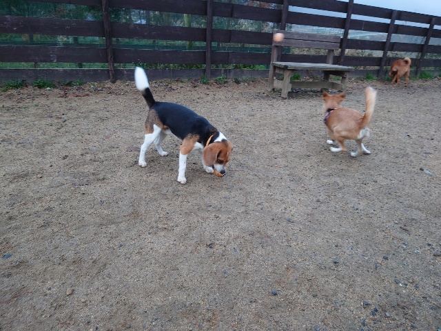 早朝のベイリー、お泊りワンコですが友達がたくさんいます。