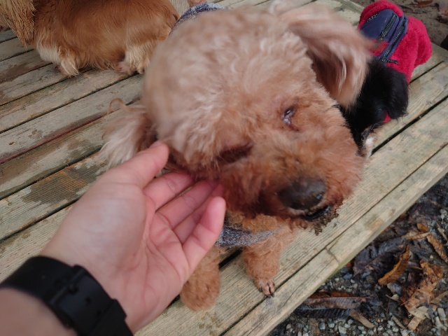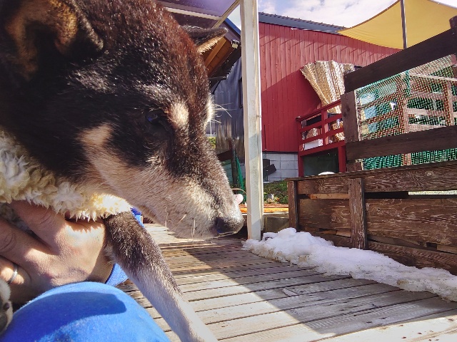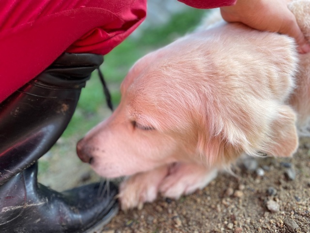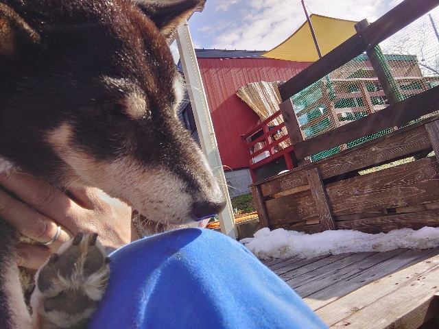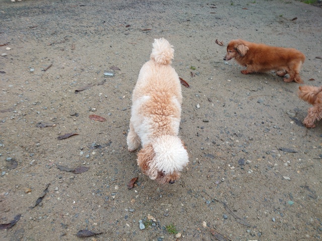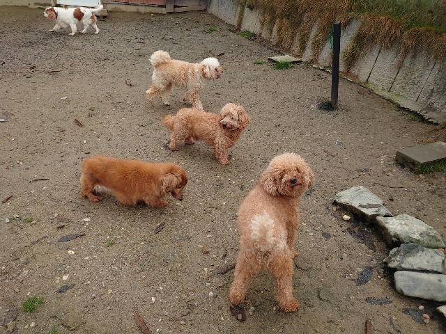 あん の優しいワンコ達と触れ合いパピーちゃんもご機嫌。