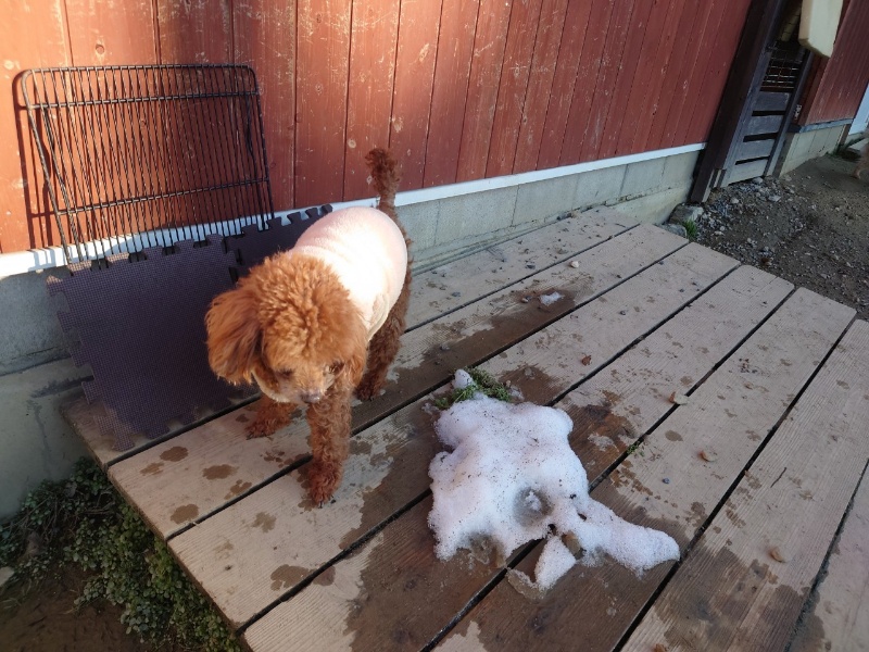 雪が積もった日のシェパードの行動がSNSに、一生懸命雪だるまをつくる姿^^