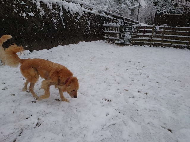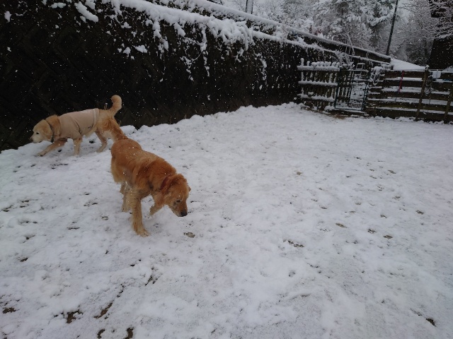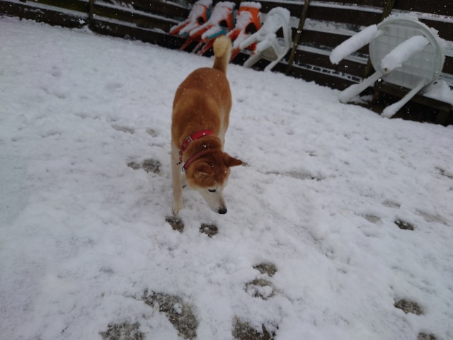 午後には融けてきました。