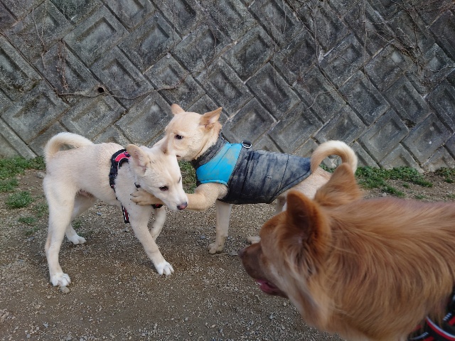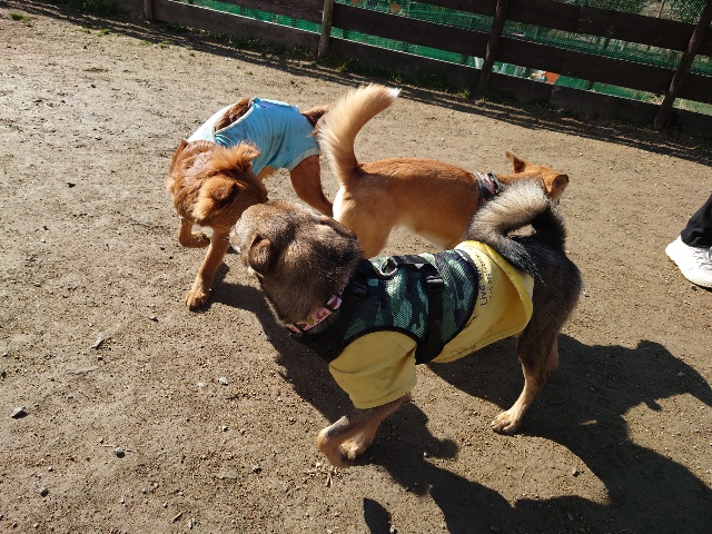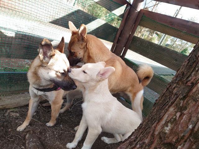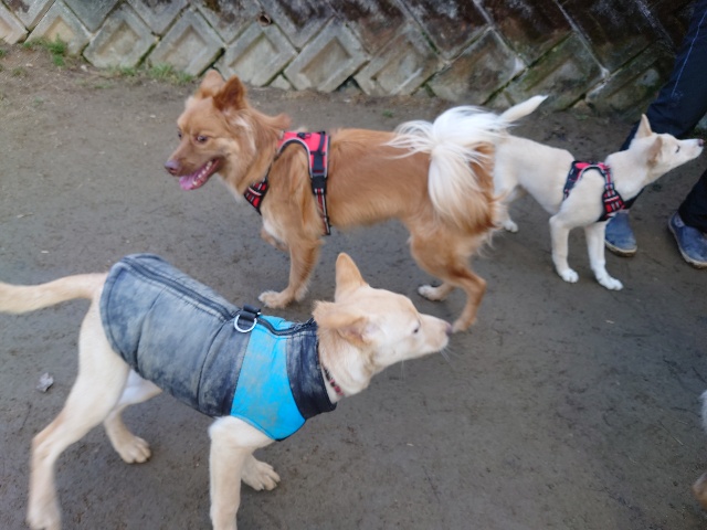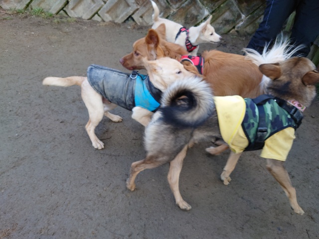散歩はいけない、知らない人は無理、ちょっとした事でパニックになる、、、いろいろある元保護犬ちゃん達ですが あん に来ると全員ご機嫌!!