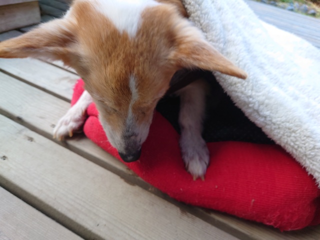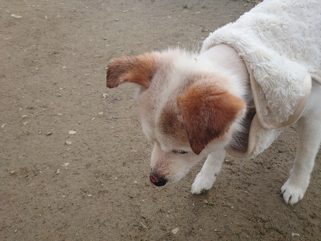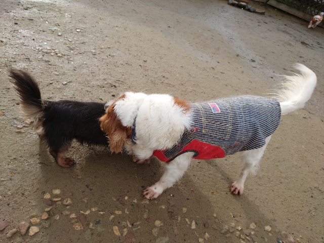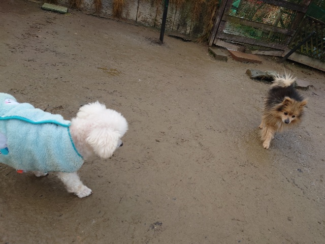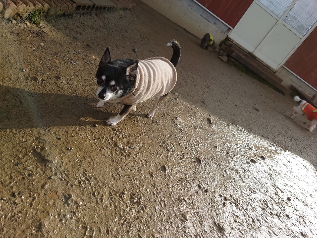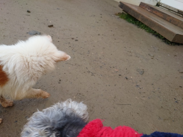 以前 ご寄付を送ってくださった飼い主様が保護犬ちゃんの里親さんになったそうで、パピーワンコと遊びに来てくれました。
