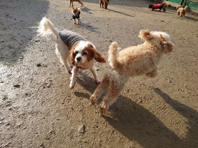 同年代のワンコと遊ぶ機会は少ないです。