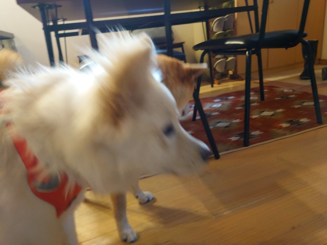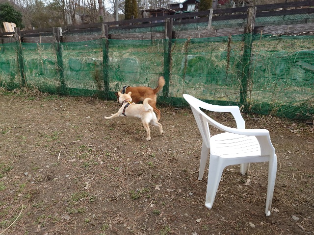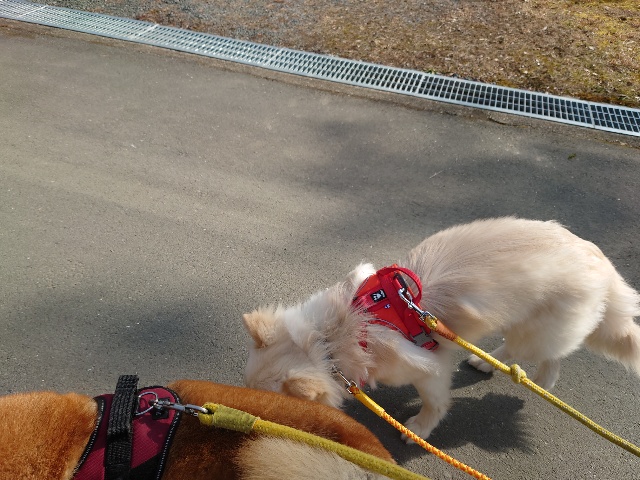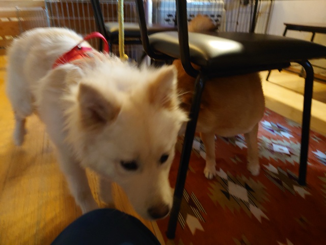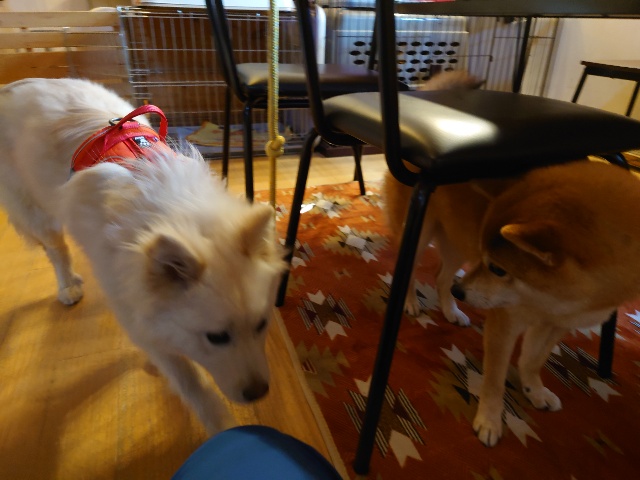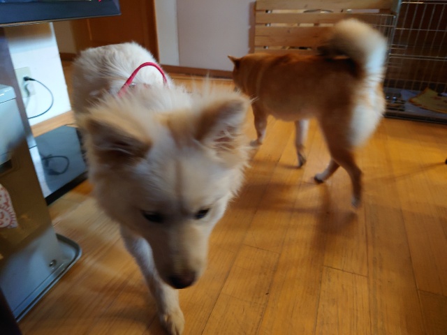 怖がりパピーちゃん、柴犬ムギと一緒に過ごしました。