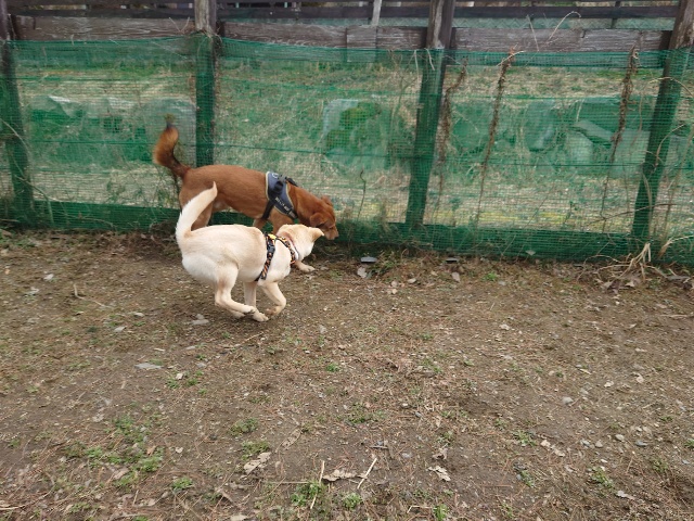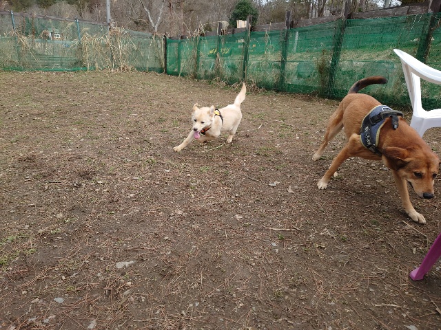 ランには保護犬ちゃんのアリスと一緒に。