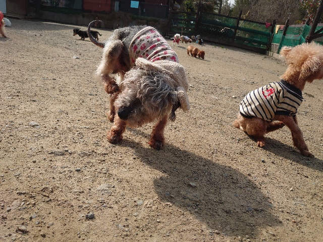 人間は見守る、犬達の付き合いは犬達に任せる。