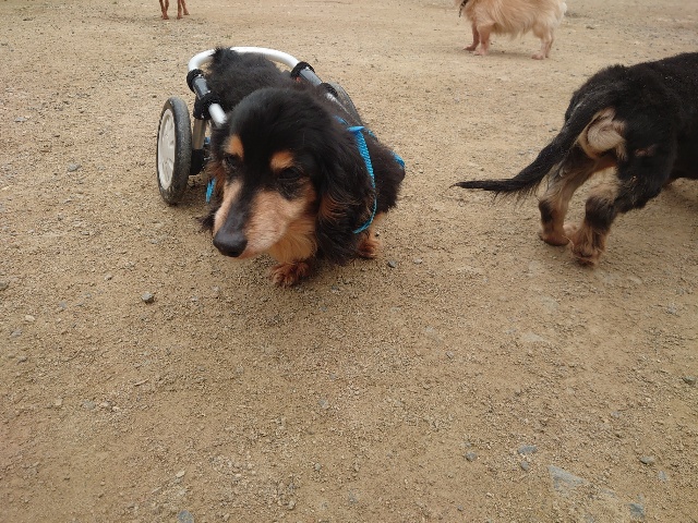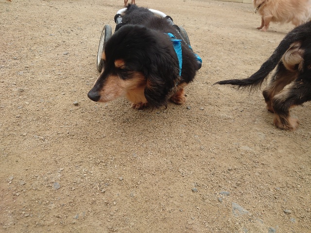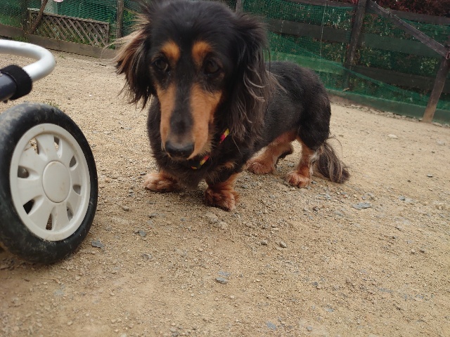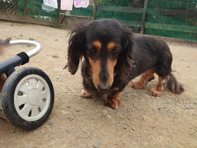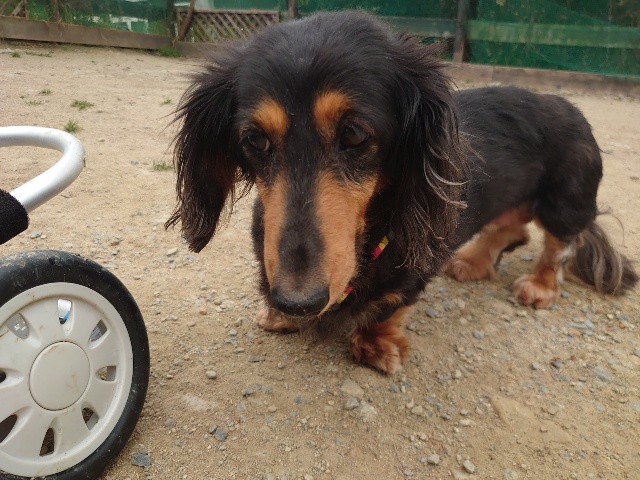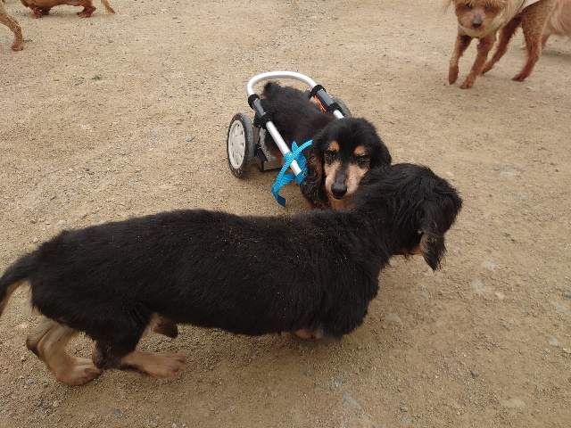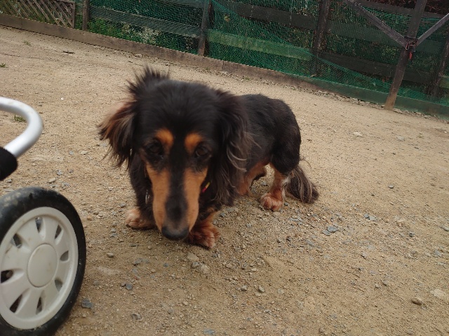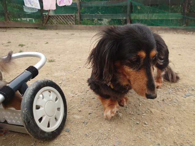 長く入院生活を送っていたダックスのレモン、病院では全く立てなかったそうです。