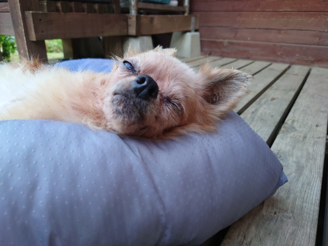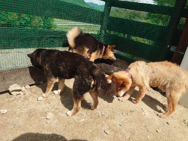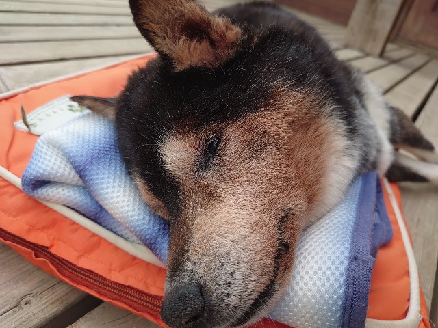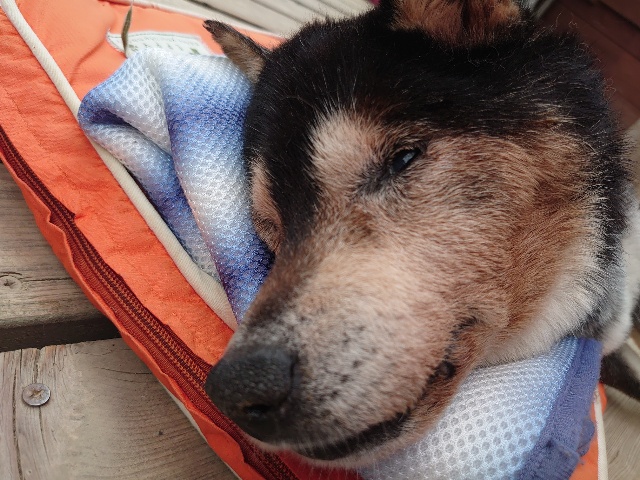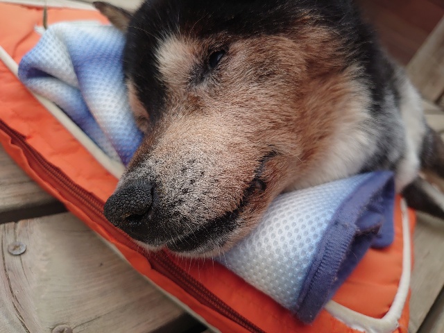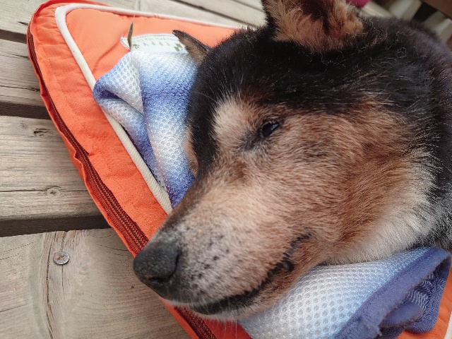 あんファミリーは日中の暑い時間帯はエアコンの効いた犬舎でゆっくり昼寝^^