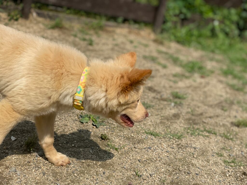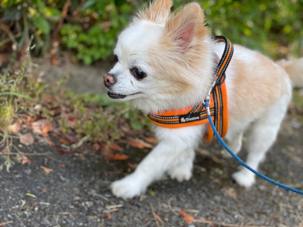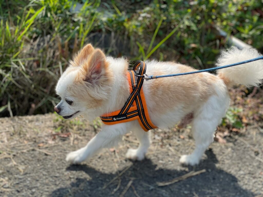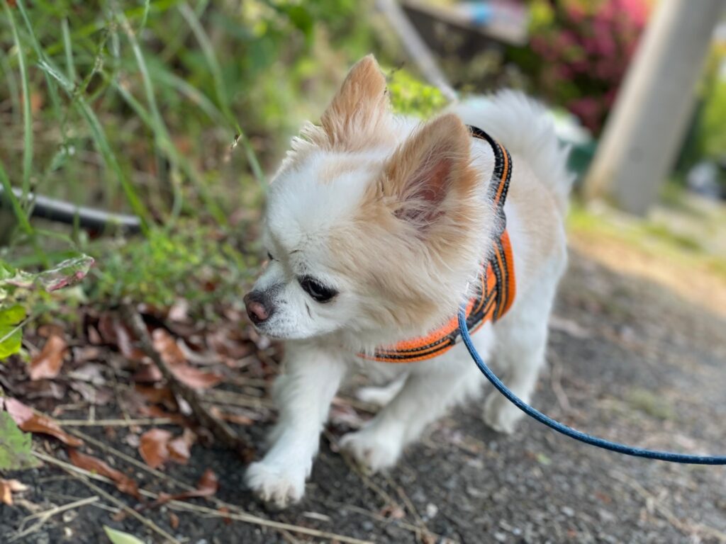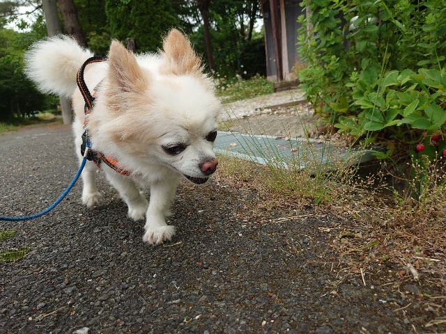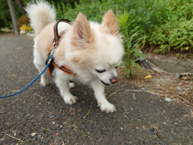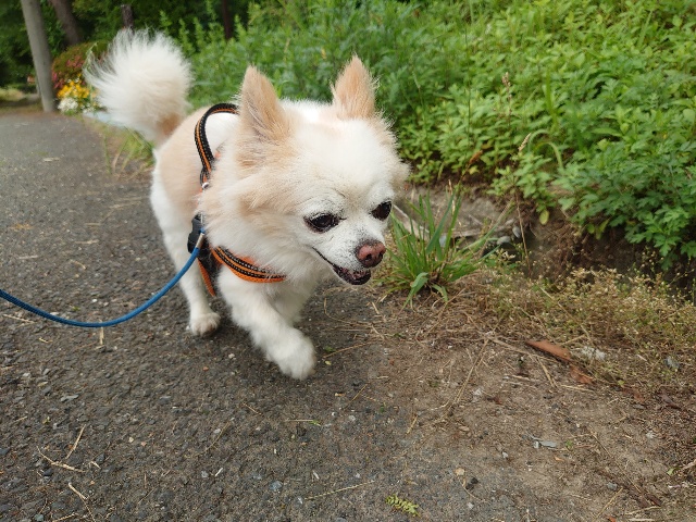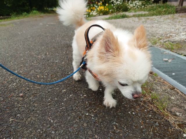 今日はリードを付けて散歩に行けました。