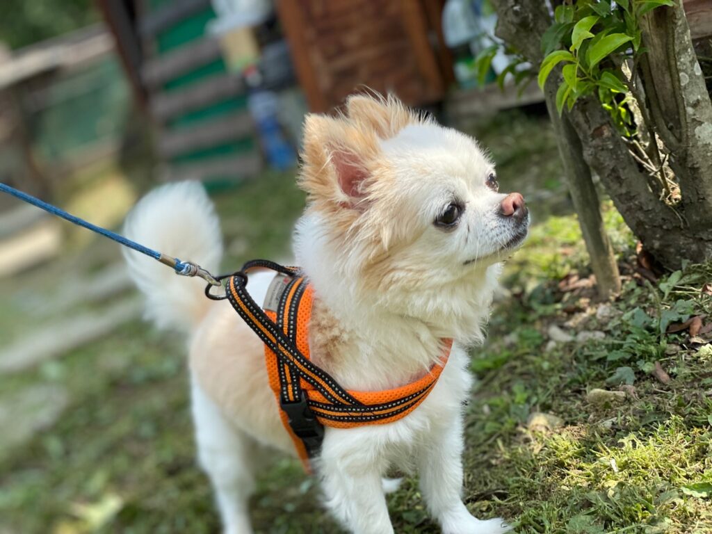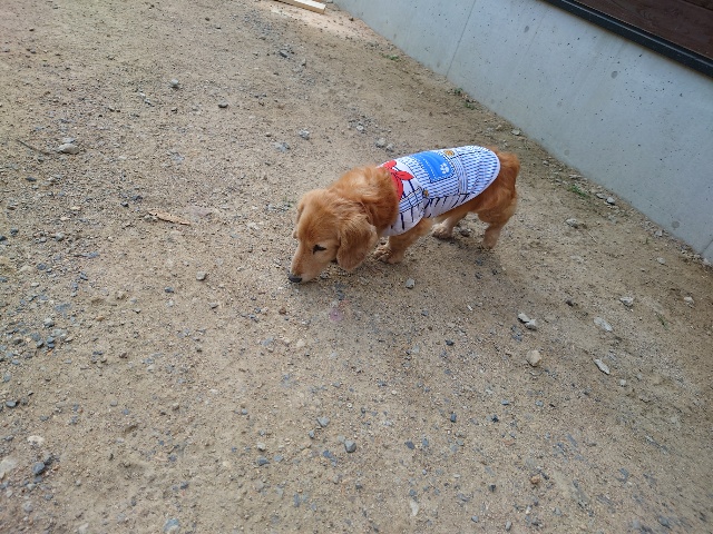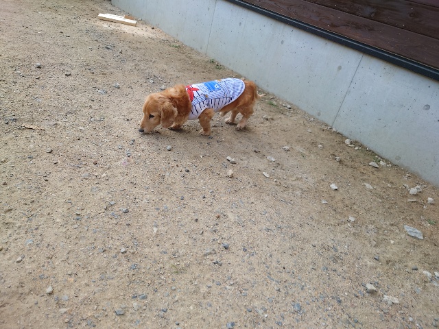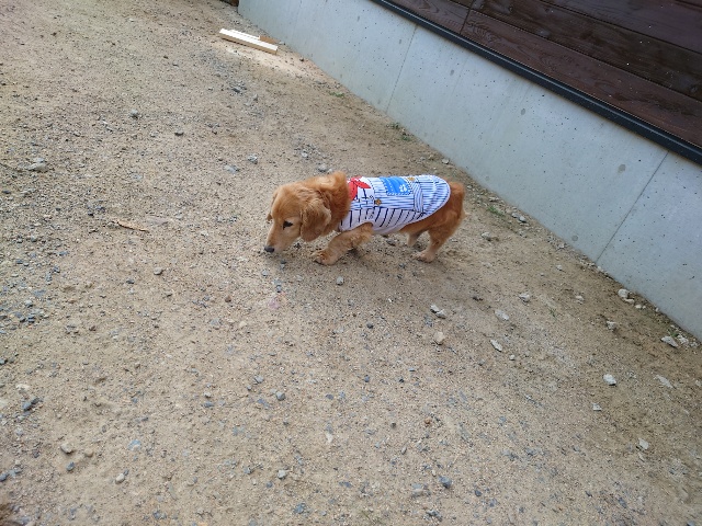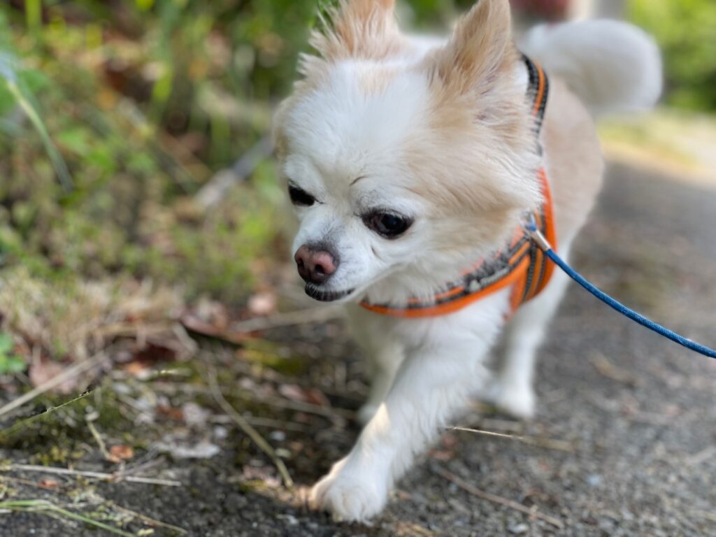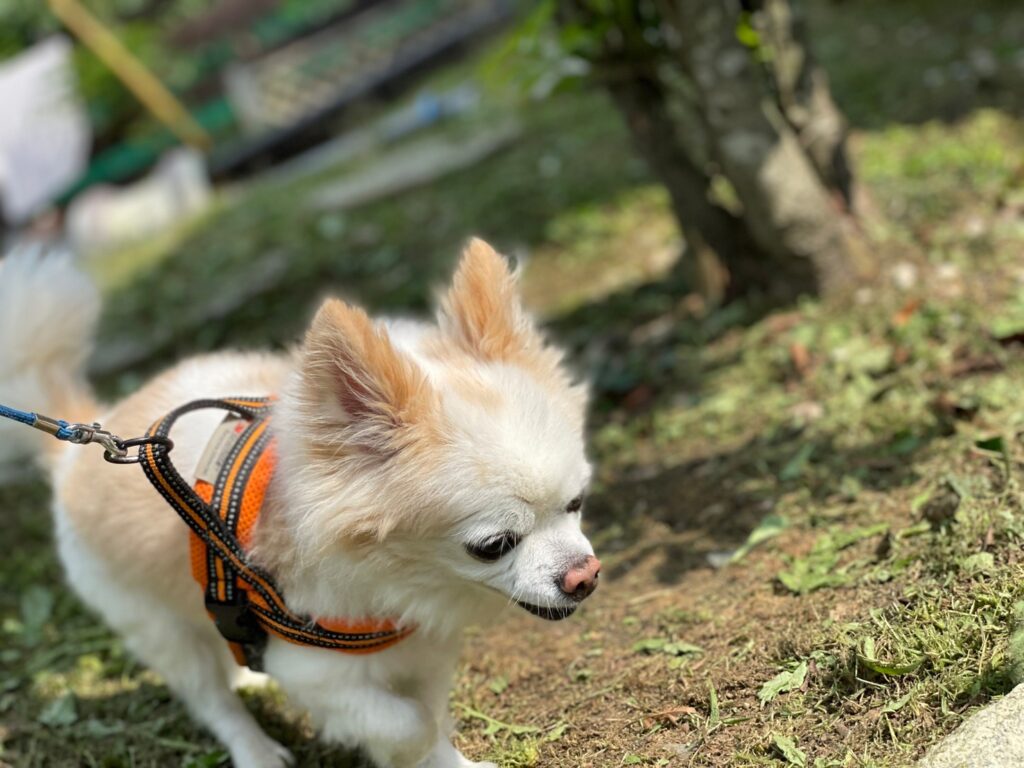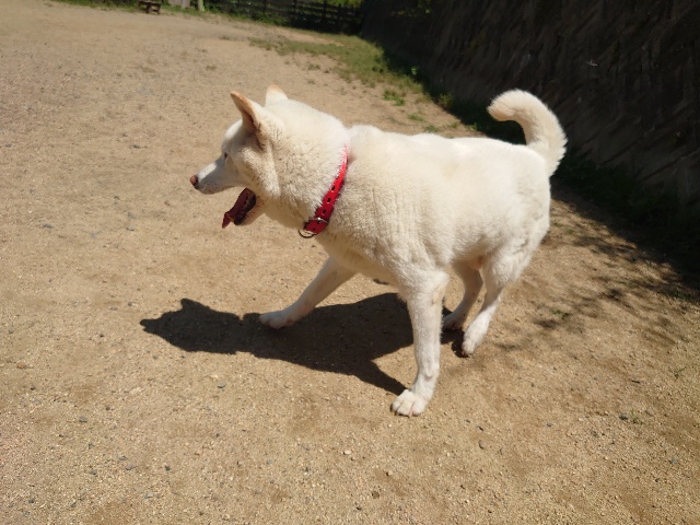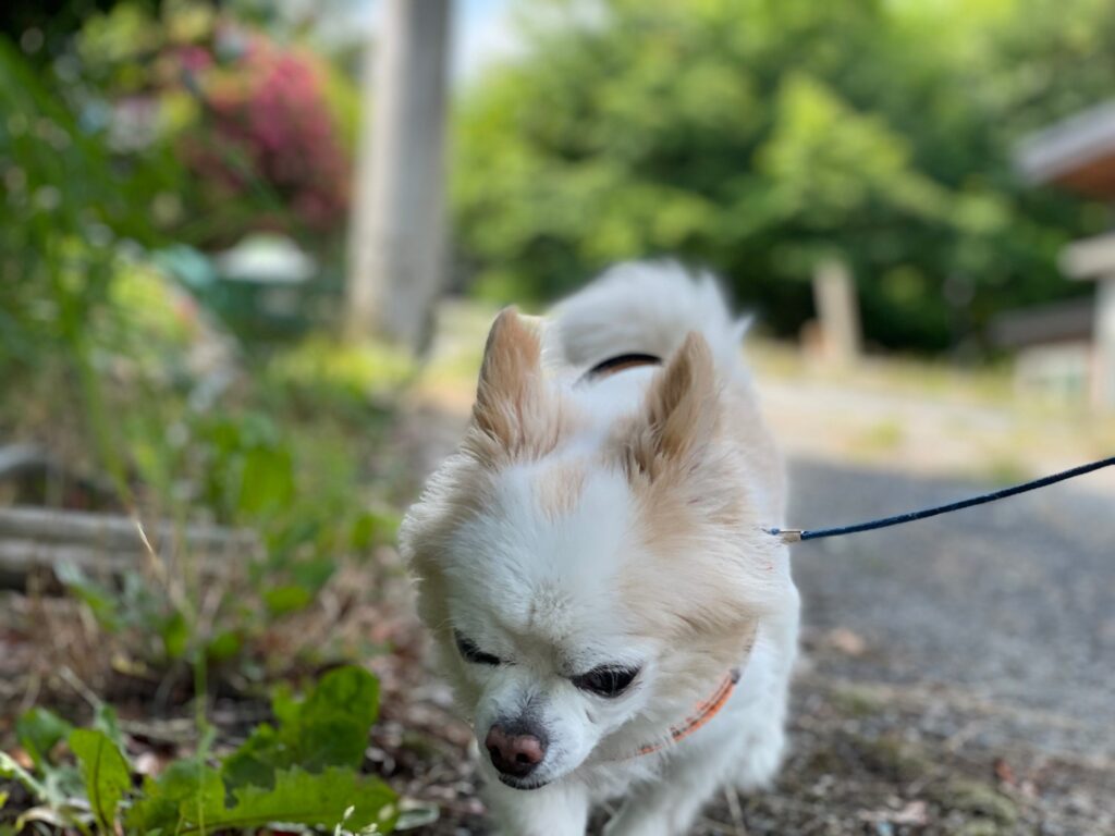 今日はリードを付けて散歩に行けました。