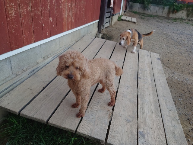 保育園で来てくれている町内のワンコ、急遽お泊りに。