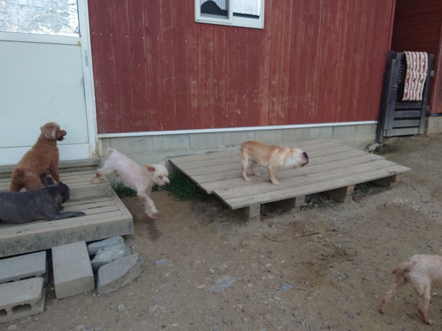 老犬ホームあん、少々の雨ならワンコ達はランに出ます。