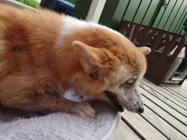 ボール遊びが大好きだったコハク、少し寂しいですが里親さんと一緒に寝てるようで良かったです。