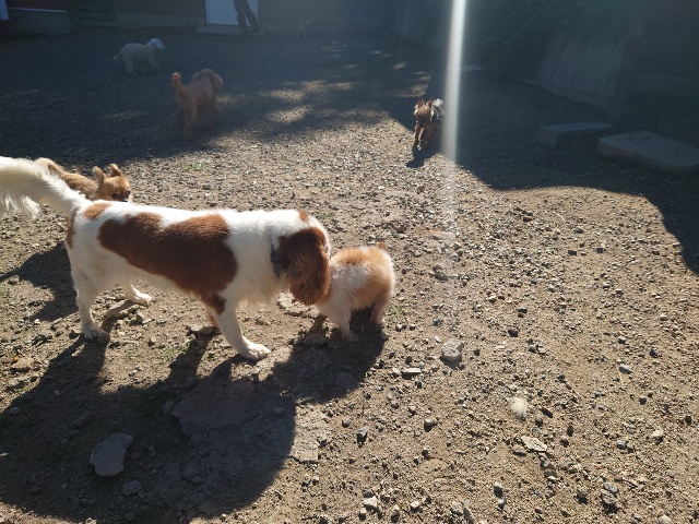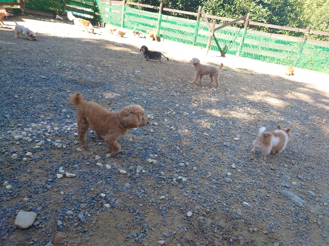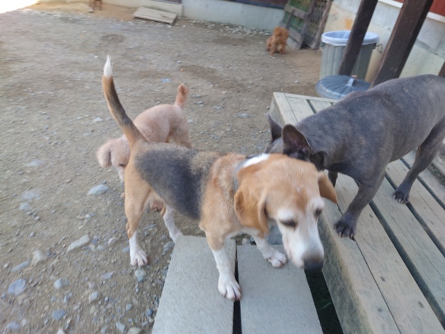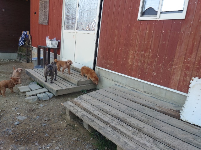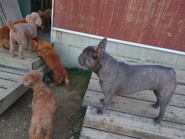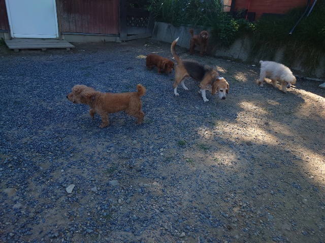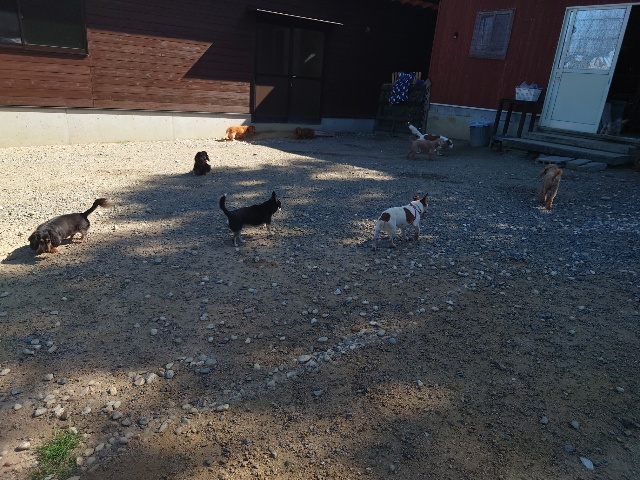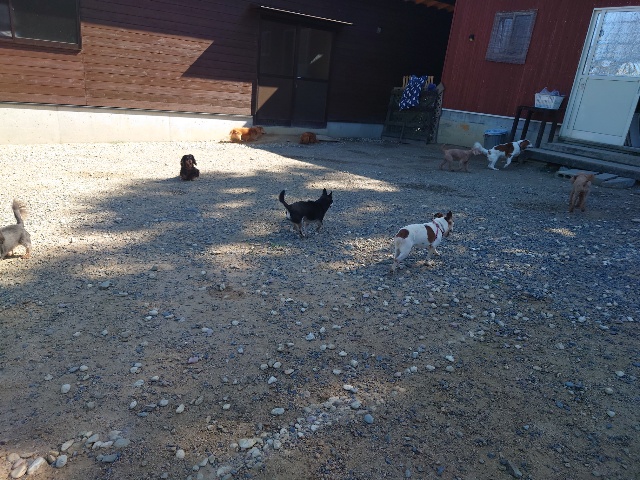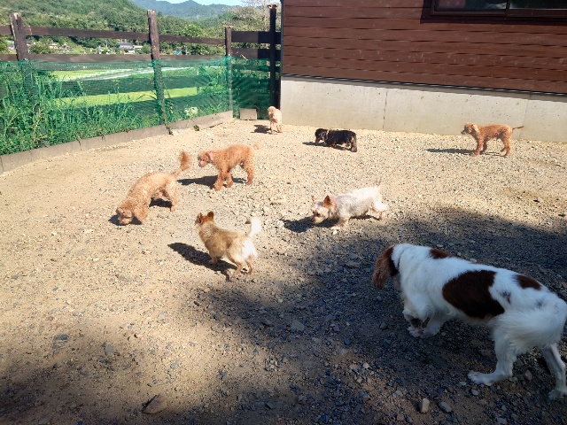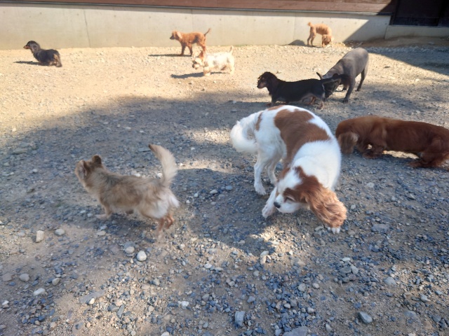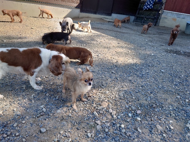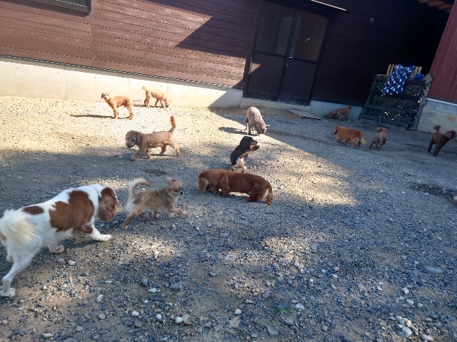 パピーから超シニア犬までがのんびり過ごしています。