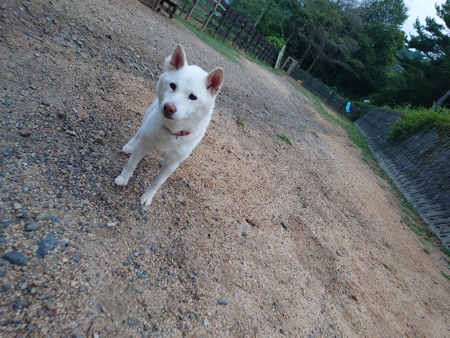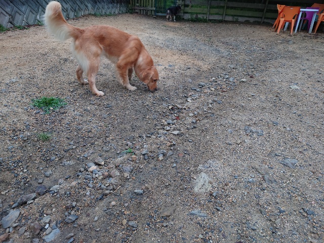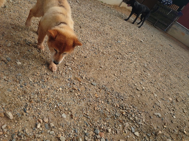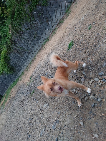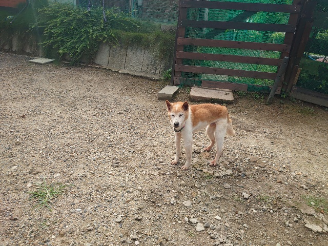 別荘のお隣さん、犬を飼い始めたそうで会わせていただきました^^
