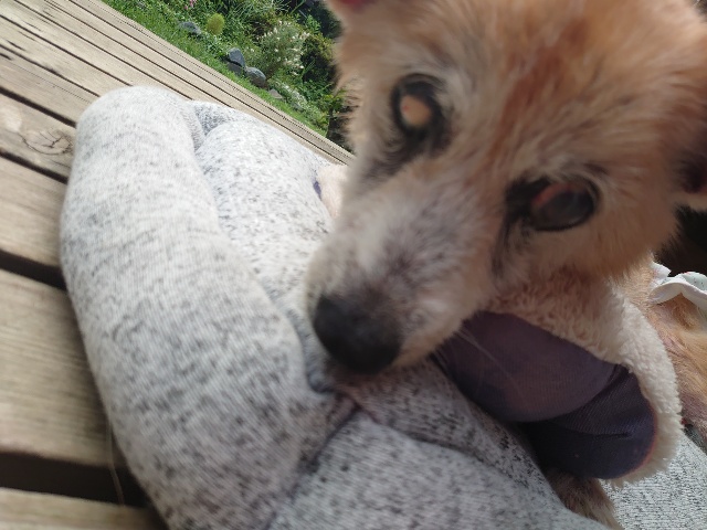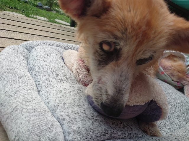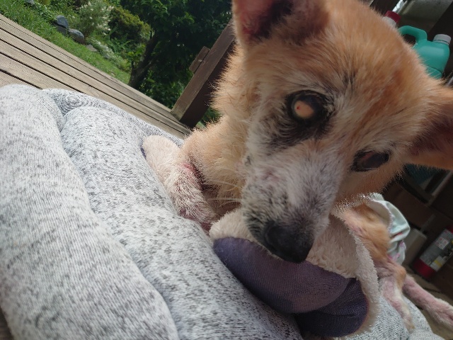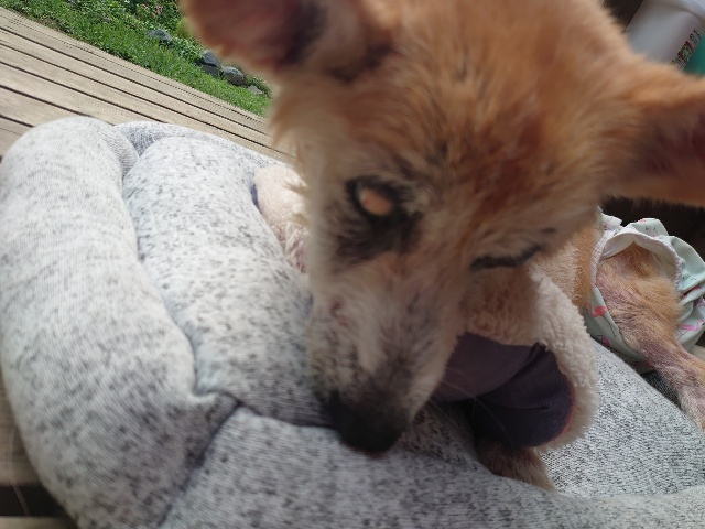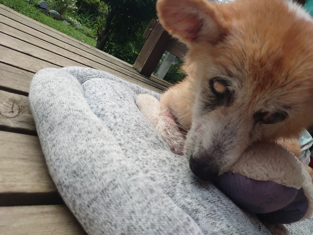 里親さんにべったり、よく懐いてくれています。