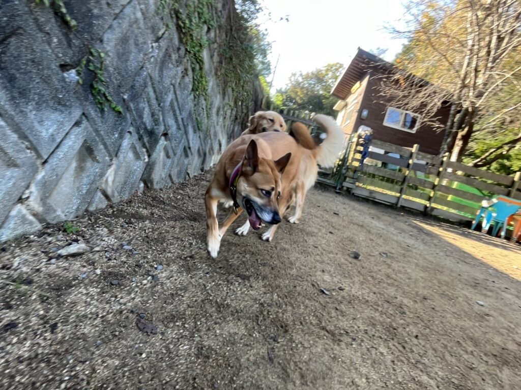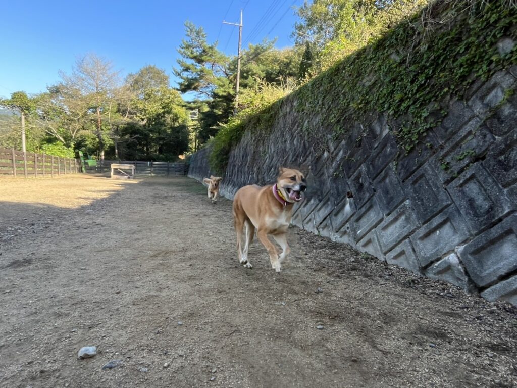 新人さんワンコも皆と一緒にランに出ています。