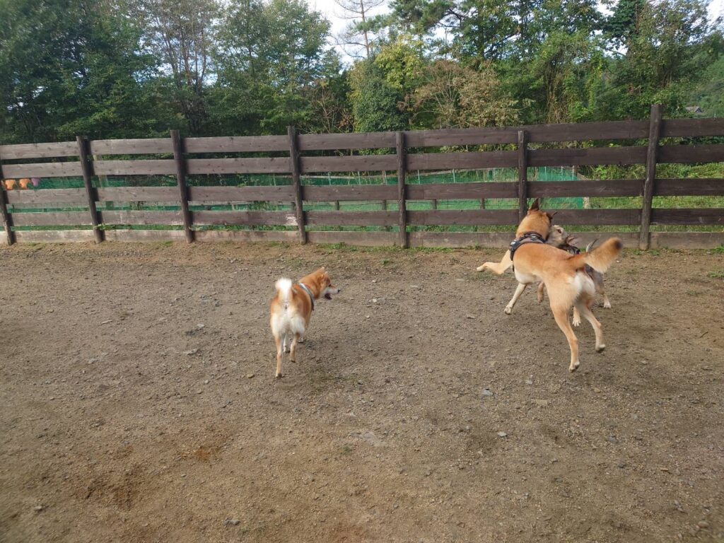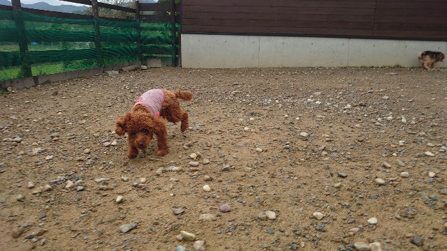 新人さんワンコも皆と一緒にランに出ています。