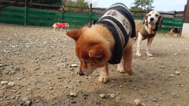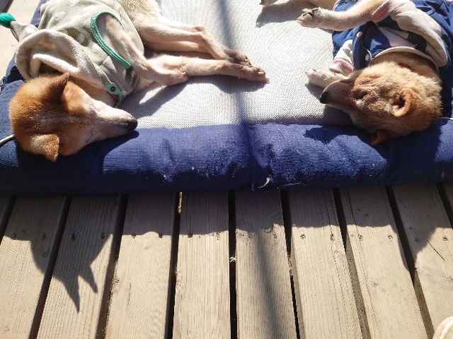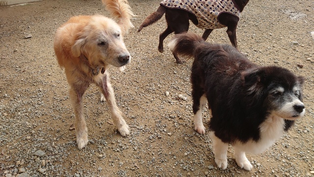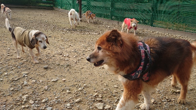 朝晩は全犬舎エアコンフル稼働、日中は晴れるとポカポカです。