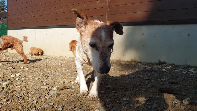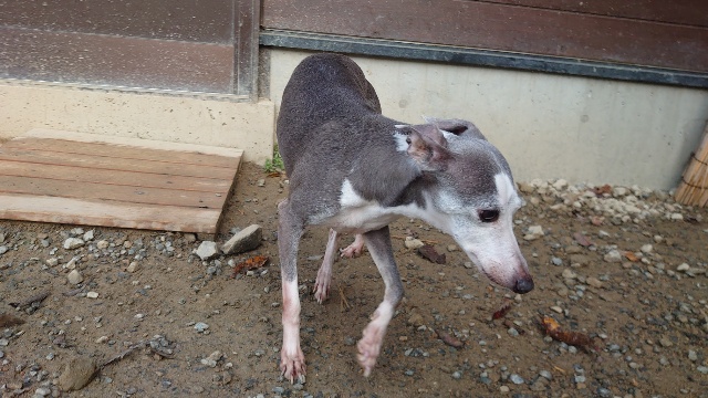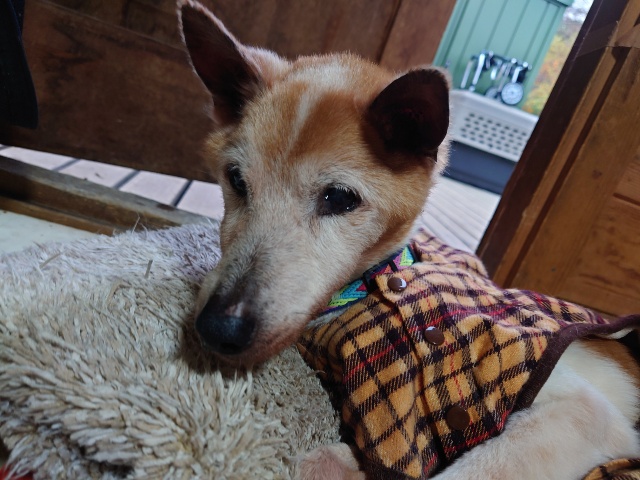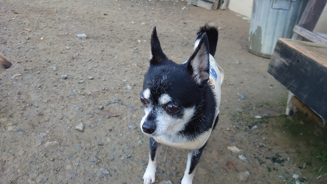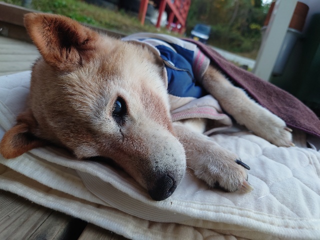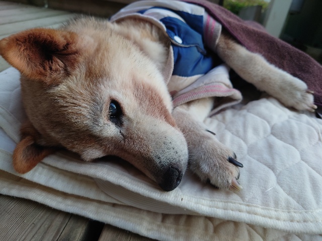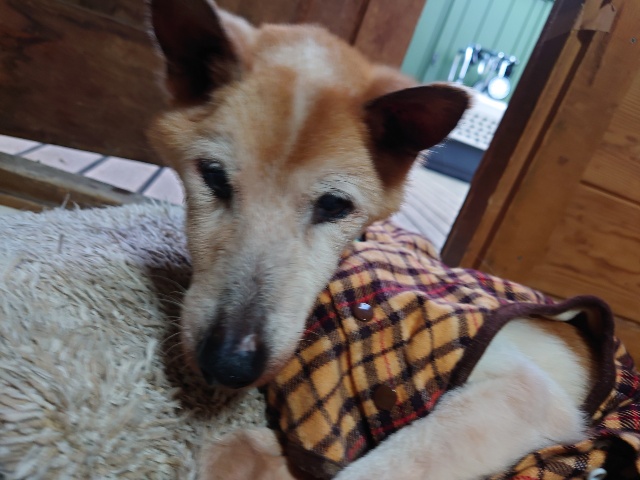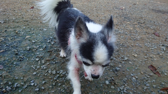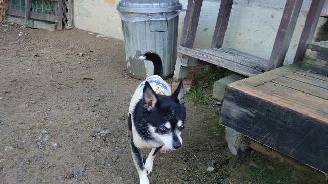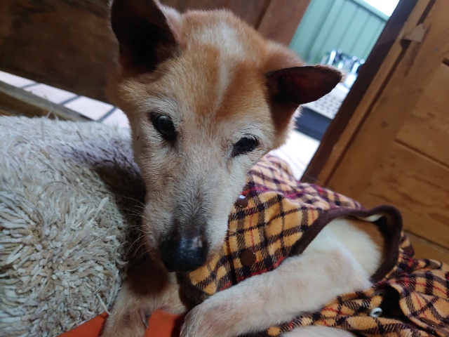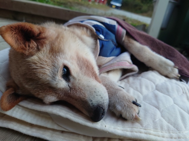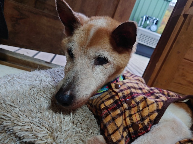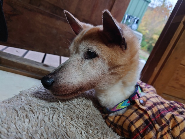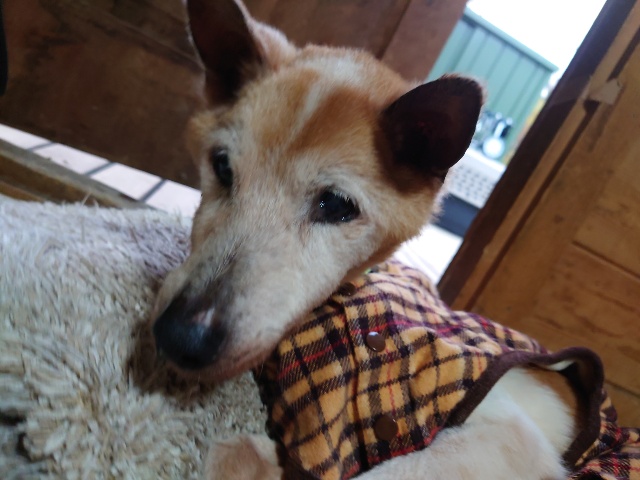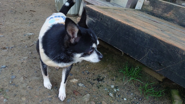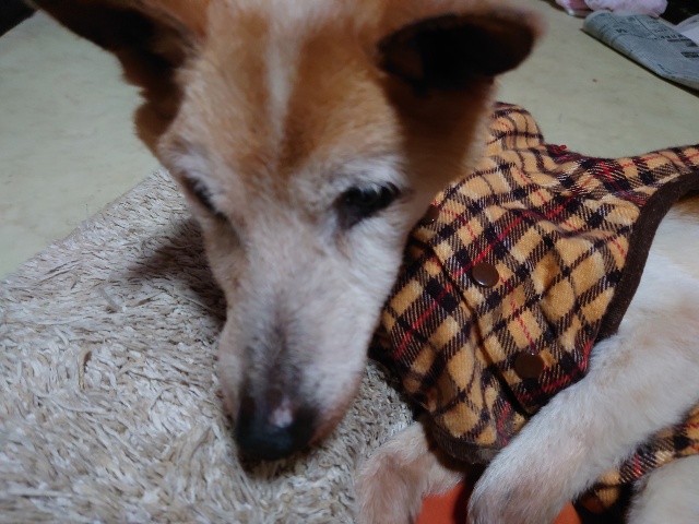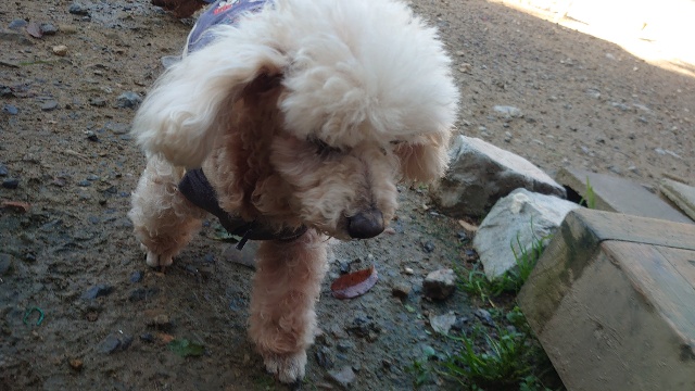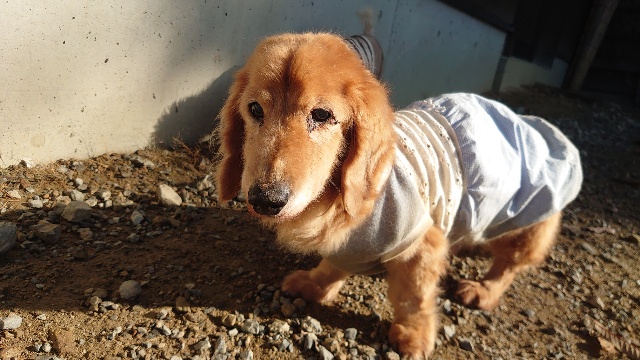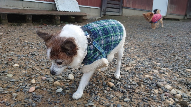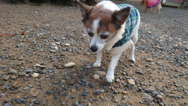 超高齢のワンコ、何とか歩けています。