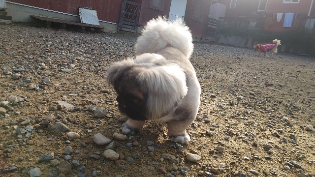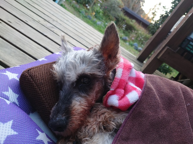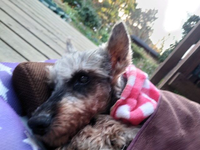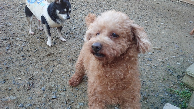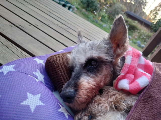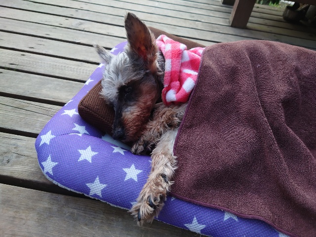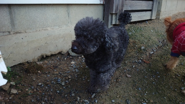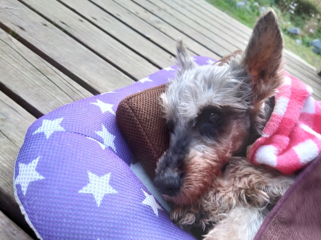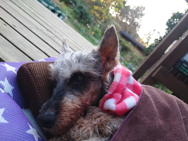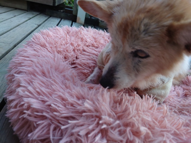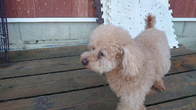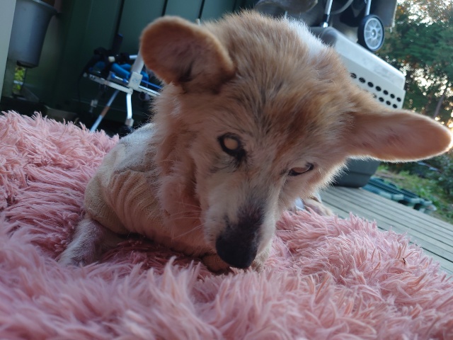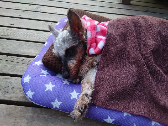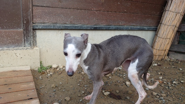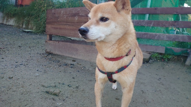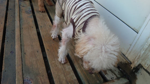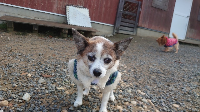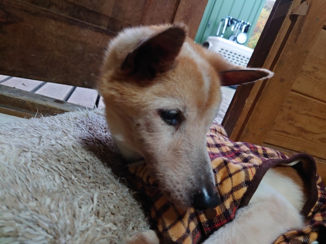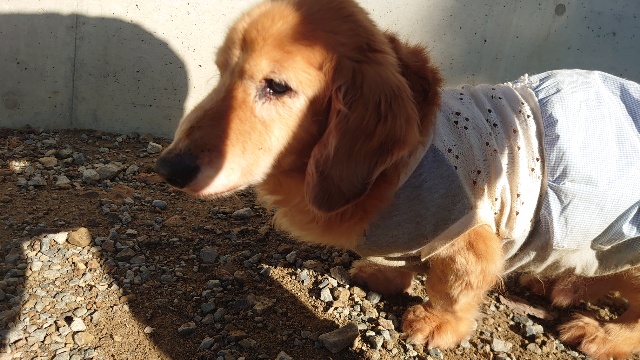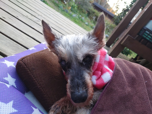 超高齢のワンコ、何とか歩けています。