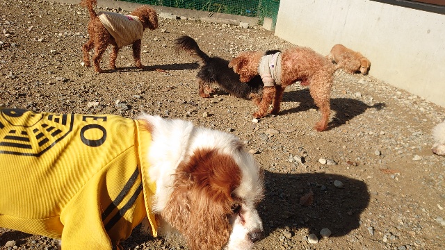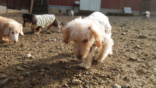 日中は暑いほど、犬舎も暖房停止です。