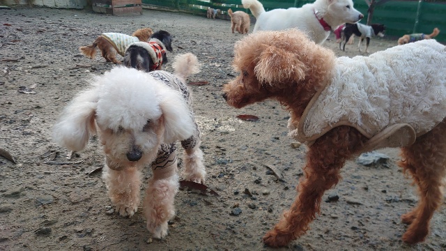 11頭のワンズ、ランで遊んでカフェでパーティー^^